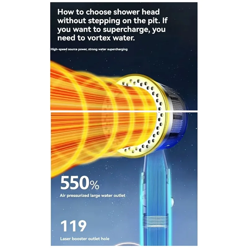 Pommeau de douche à main avec forte pression, 5 modes de pulvérisation, filtre à économie d’eau, arrêt à un bouton pour salle de bain, meilleures ventes
