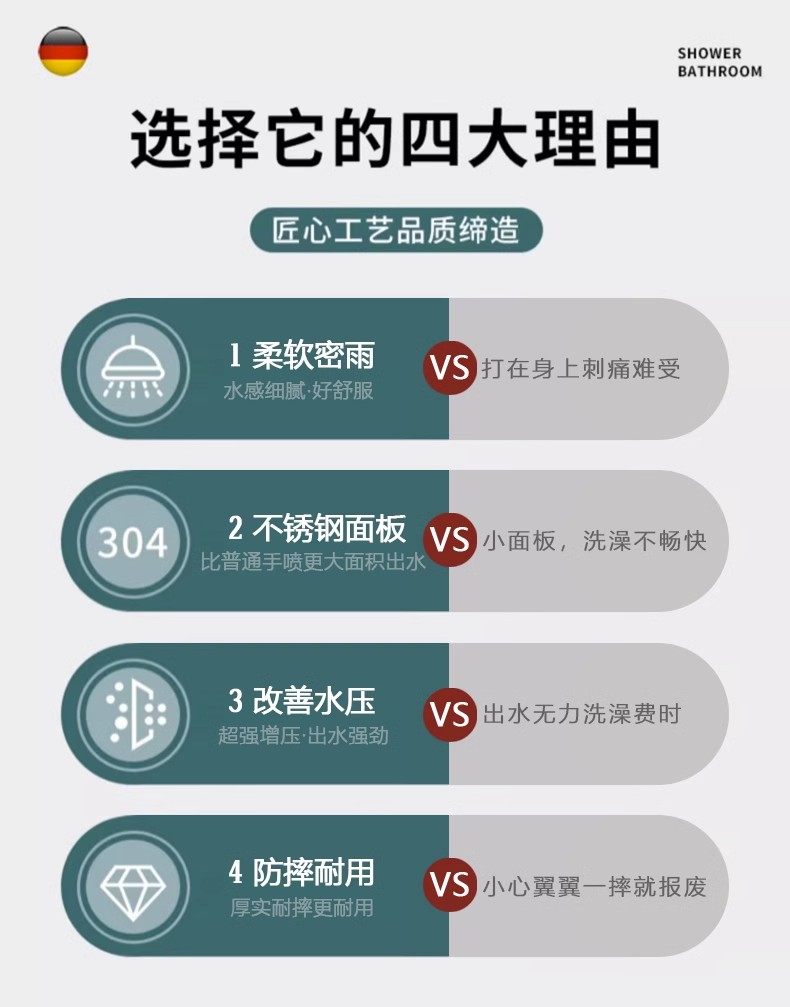 - Fonction de la pomme de douche: Pommes de douche à économie d’eau