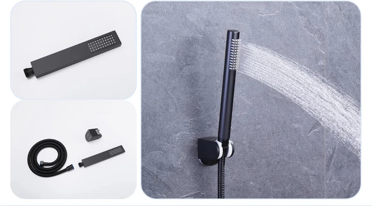 Pommeau de douche à main en acier inoxydable, douchette à main noire chromée, accessoires de location, fonction unique, 811545Pommeau de douche à main en acier inoxydable, douchette à main noire chromée, accessoires de location, fonction unique, 811545