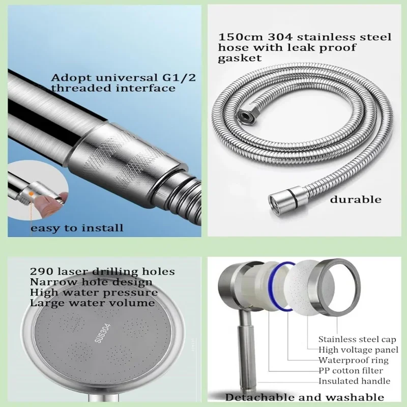 Matériau : acier inoxydable. Fabriquée en acier inoxydable durable, cette pomme de douche est conçue pour durer et résister à la corrosion.