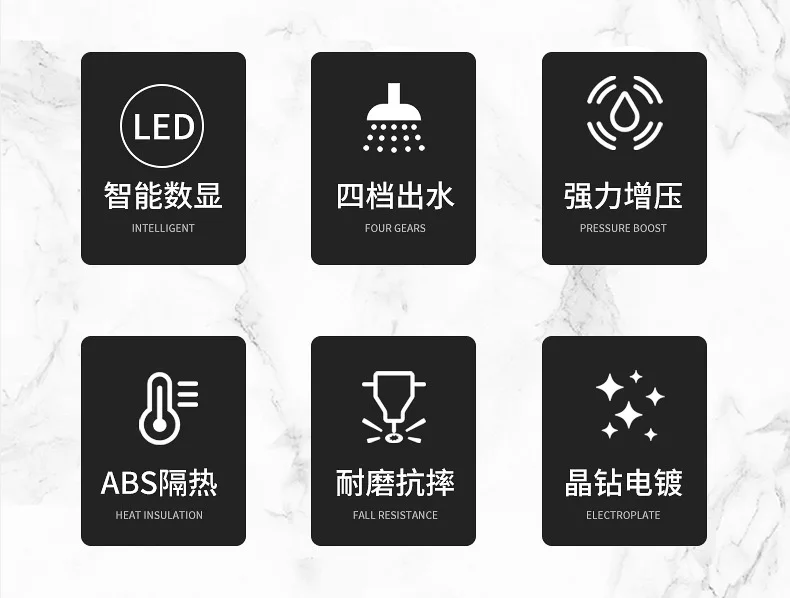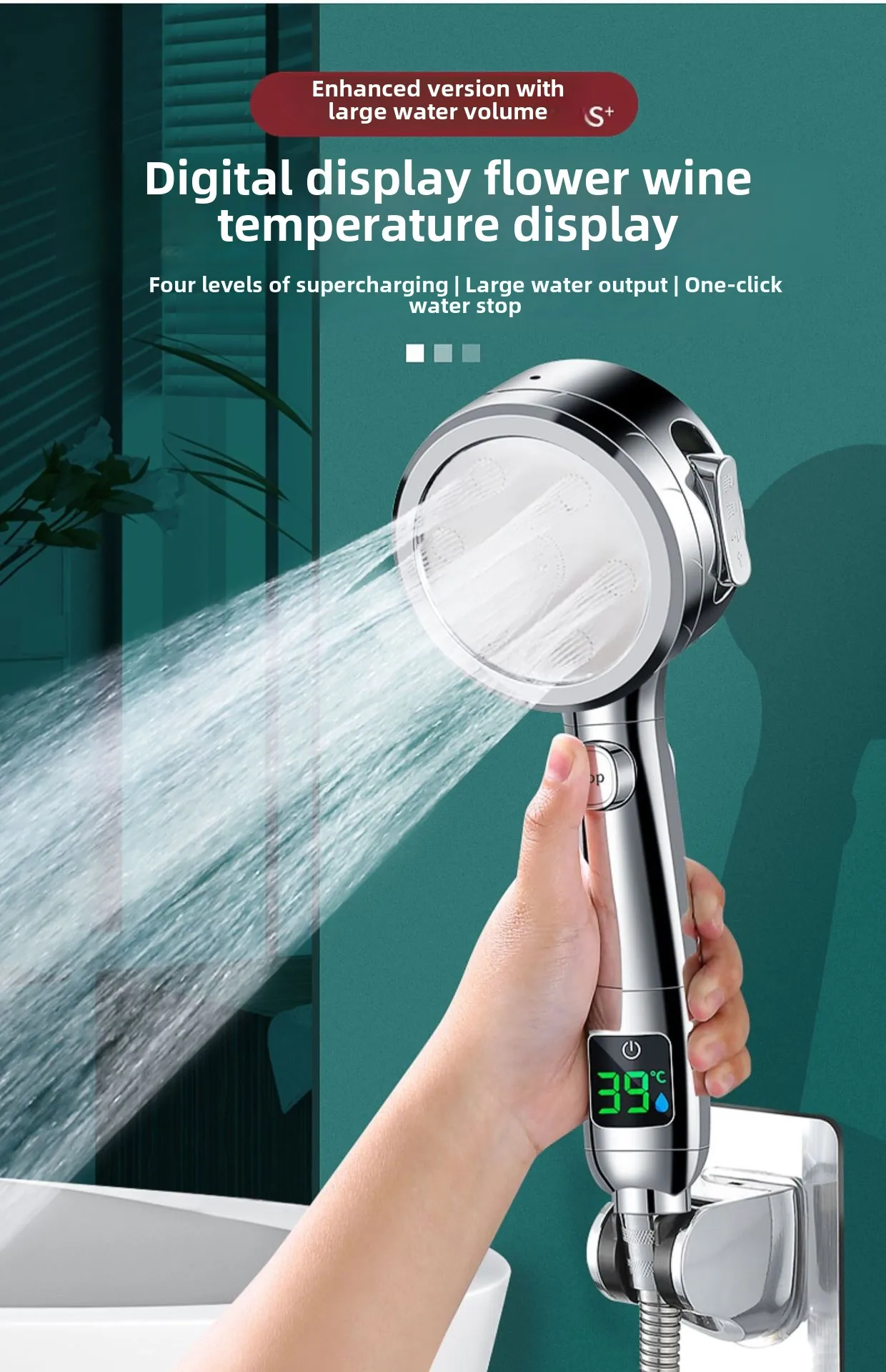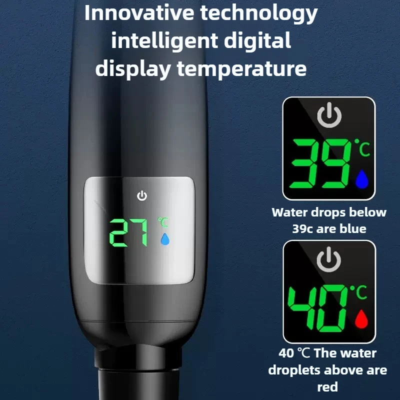 Pommeau de douche à main haute pression, salle de bain, économie d'eau, pulvérisation réglable pressurisée, affichage numérique de la température LED |