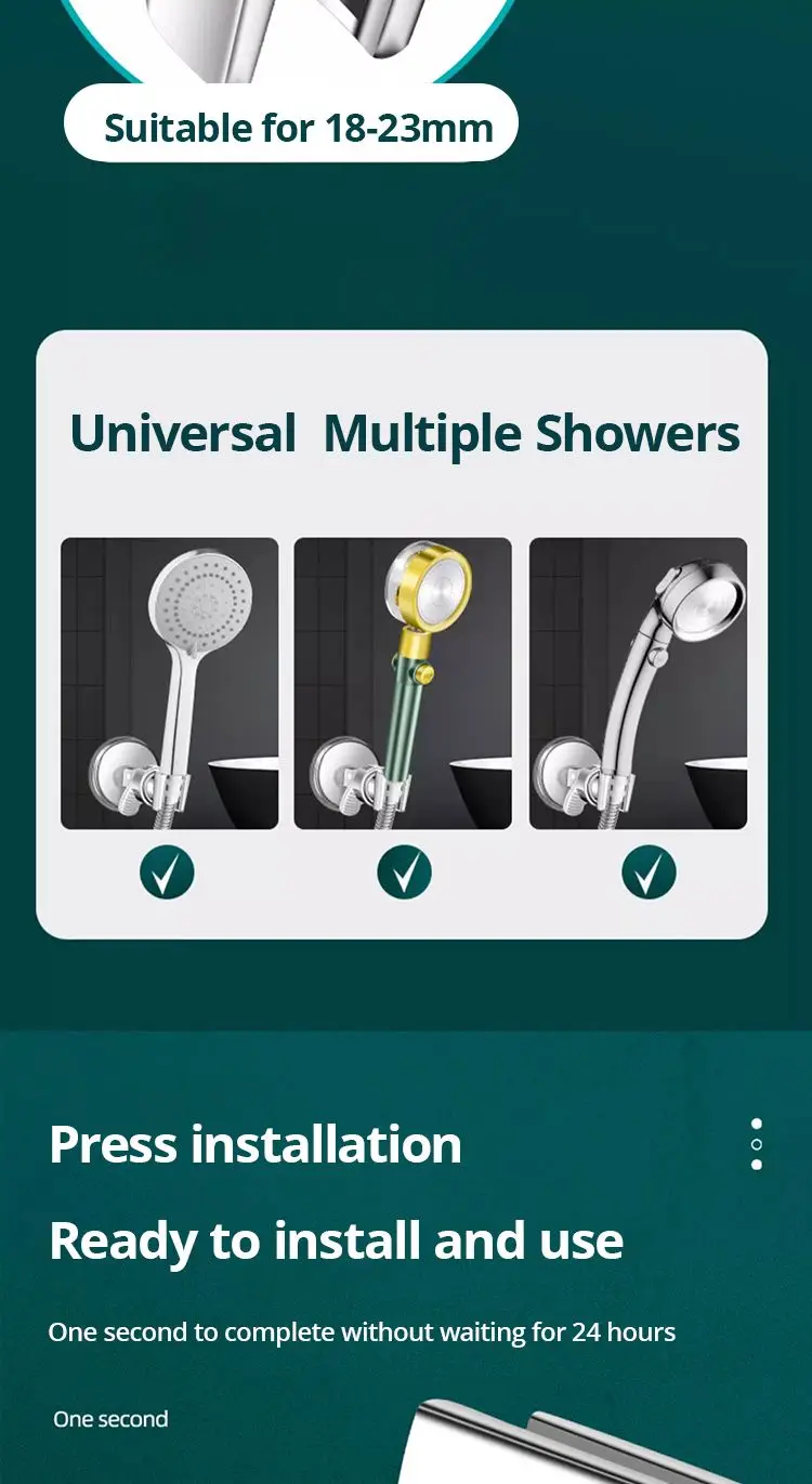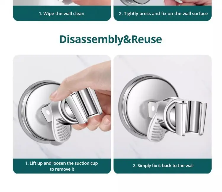 • Hauteur et angle réglables:Le support de douche peut être ajusté à différentes hauteurs et angles, ce qui le rend adapté à différents utilisateurs et aménagements de salle de bain.