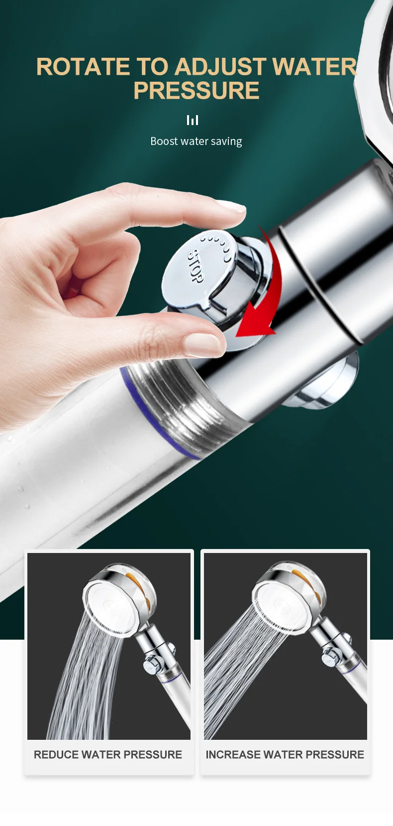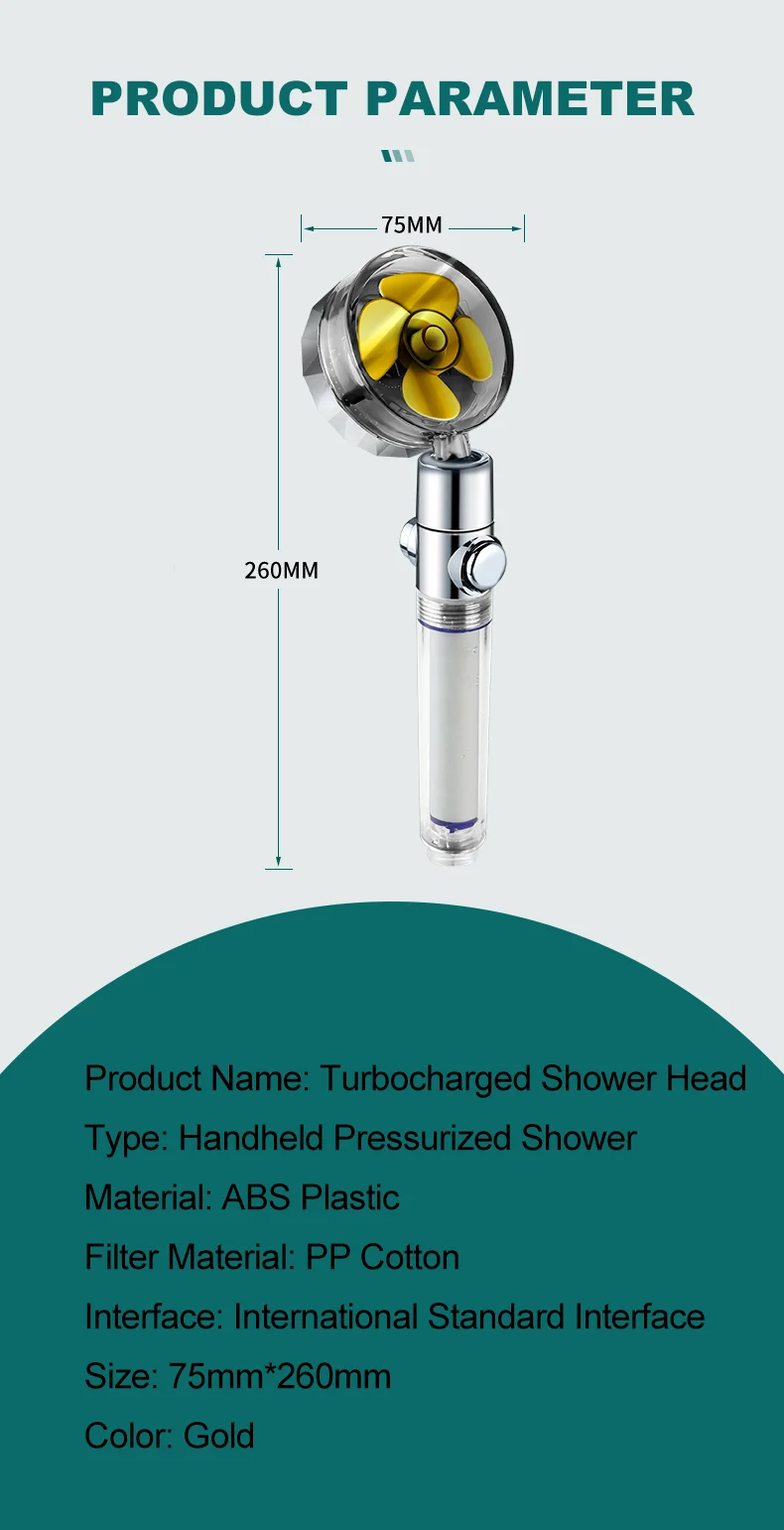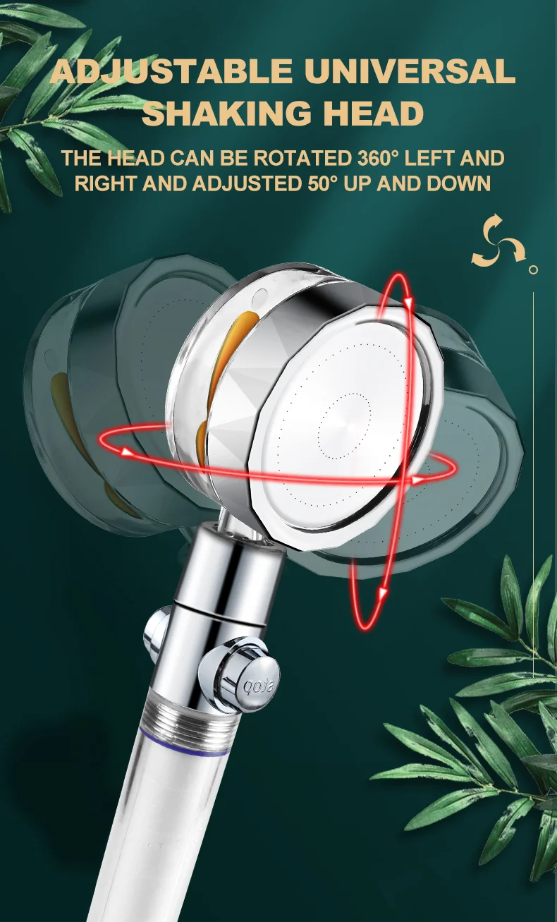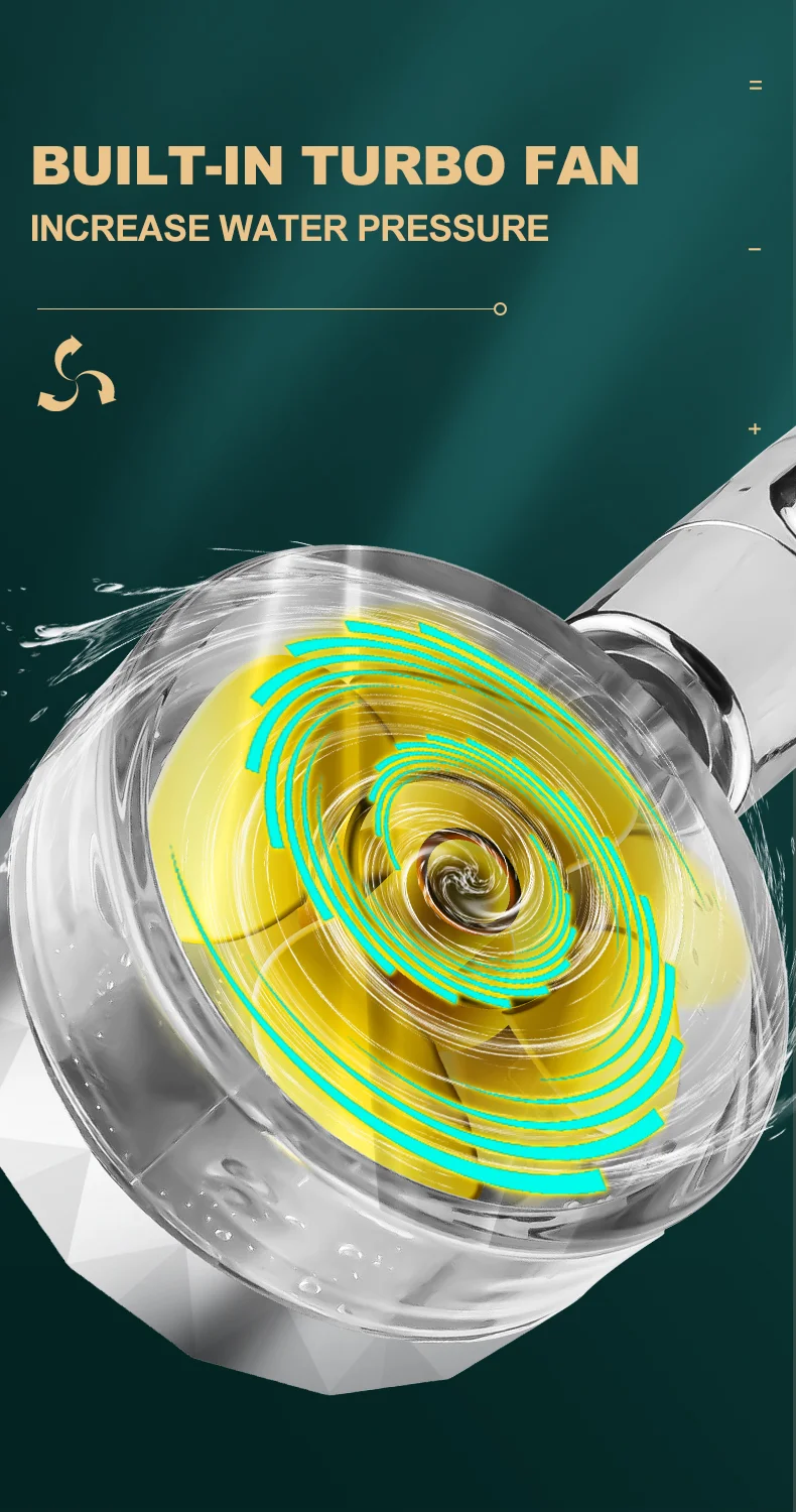 【Ventilateur turbo intégré】 Le débit d’eau sera pulvérisé sur les pales du ventilateur turbo et fera tourner le ventilateur turbo rapidement.Augmente la pression de l’eau.