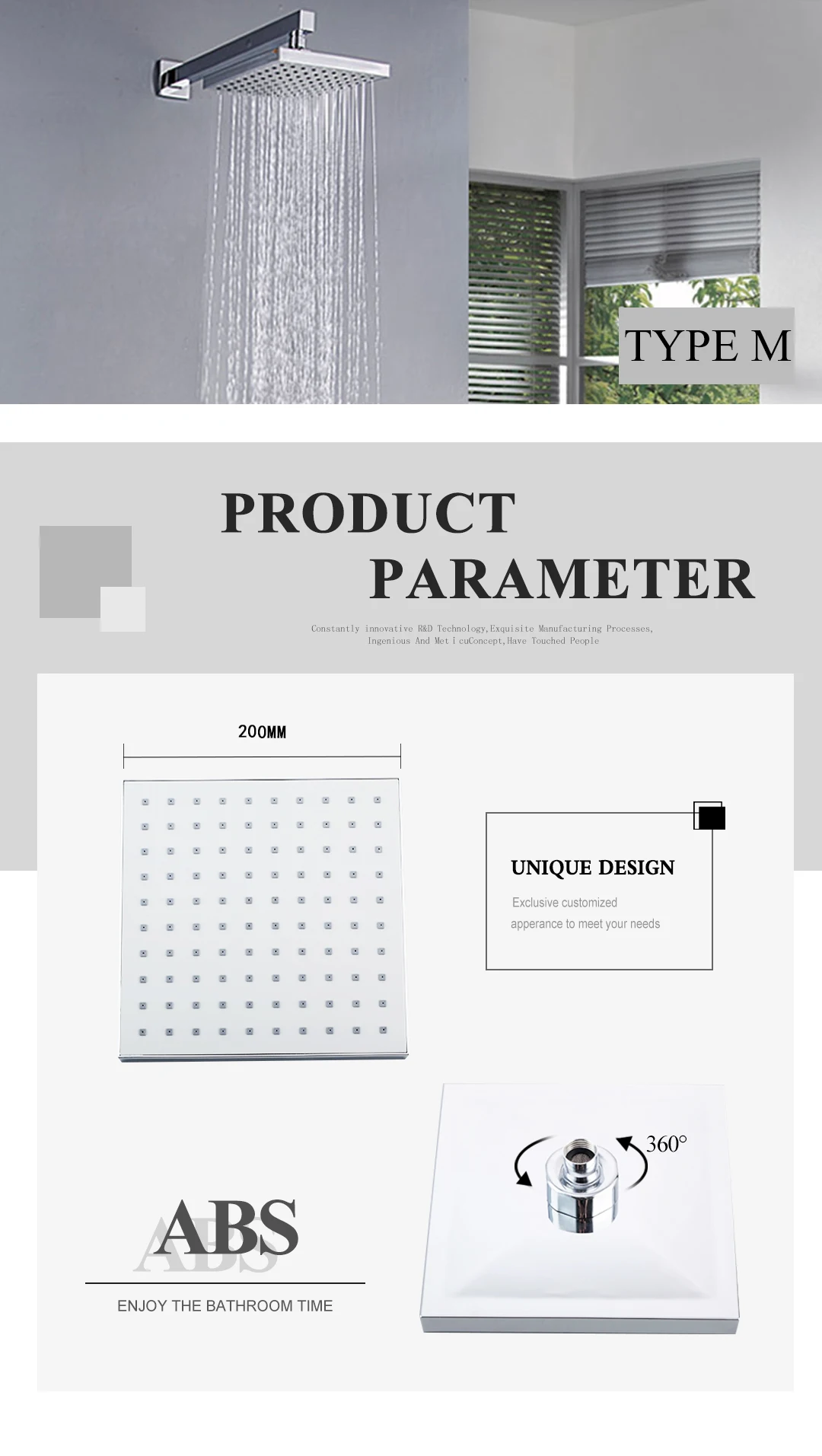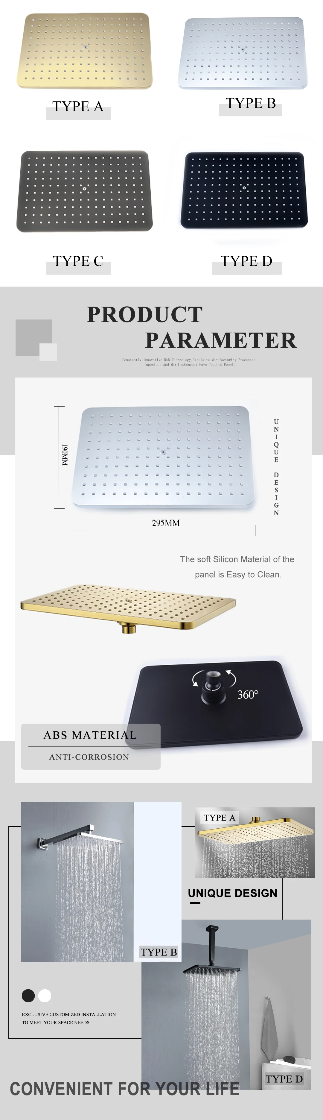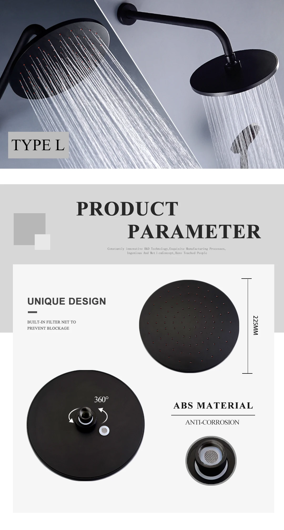 Type : pomme de douche à effet de pluie supérieure et bras de douche