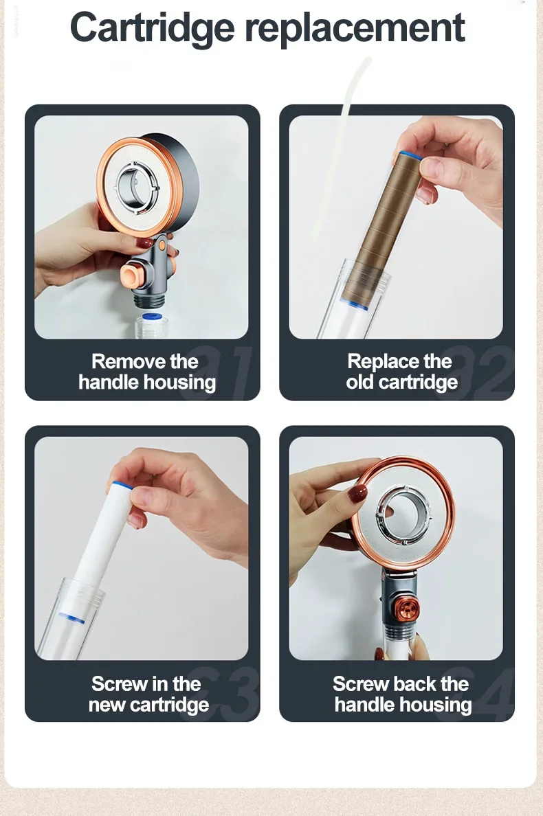 Pommeau de douche à économie d’eau, pomme de douche à flux d’hélice Turbo haute pression avec ventilateur, filtre intégré, accessoires de salle de bains à pluie