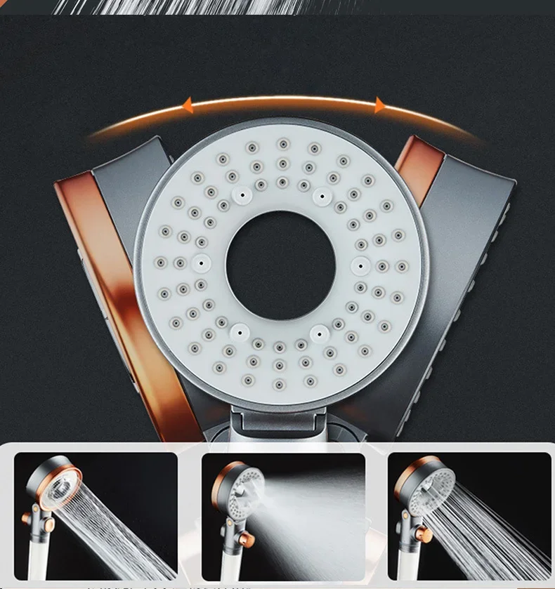 Pommeau de douche à économie d'eau, pomme de douche à flux d'hélice Turbo haute pression avec ventilateur, filtre intégré, accessoires de salle de bains à pluie