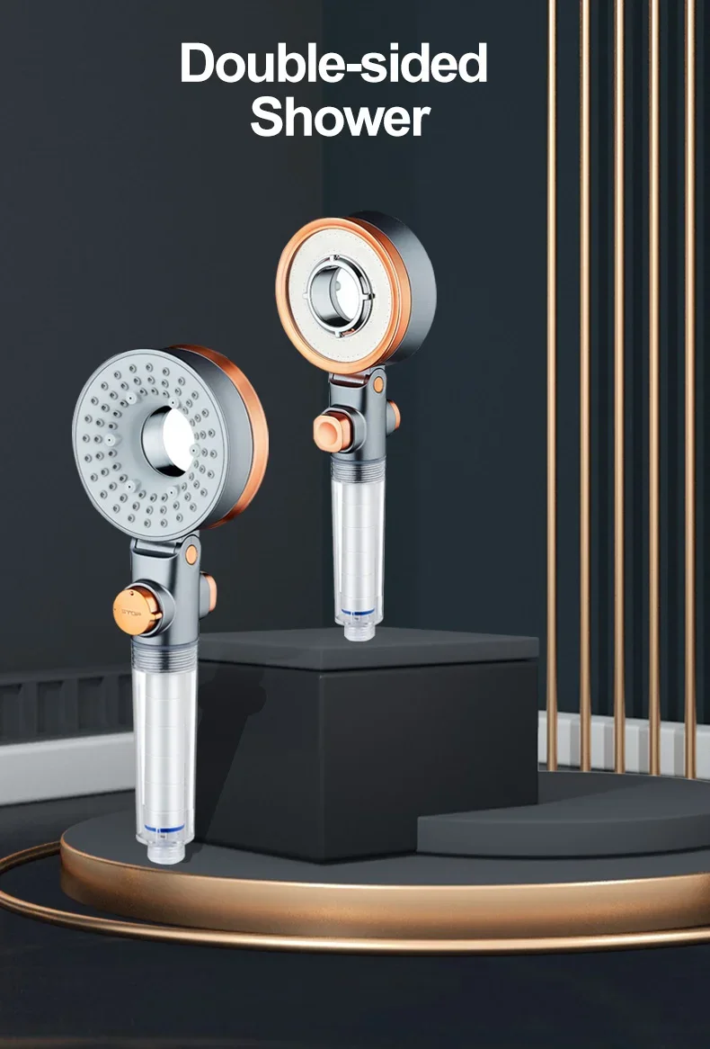 Pommeau de douche double face unique pour salle de bain, 3 types de pulvérisation, filtre d'économie d'eau, pluie ronde, buse réglable, pulvérisateur d'appoint
