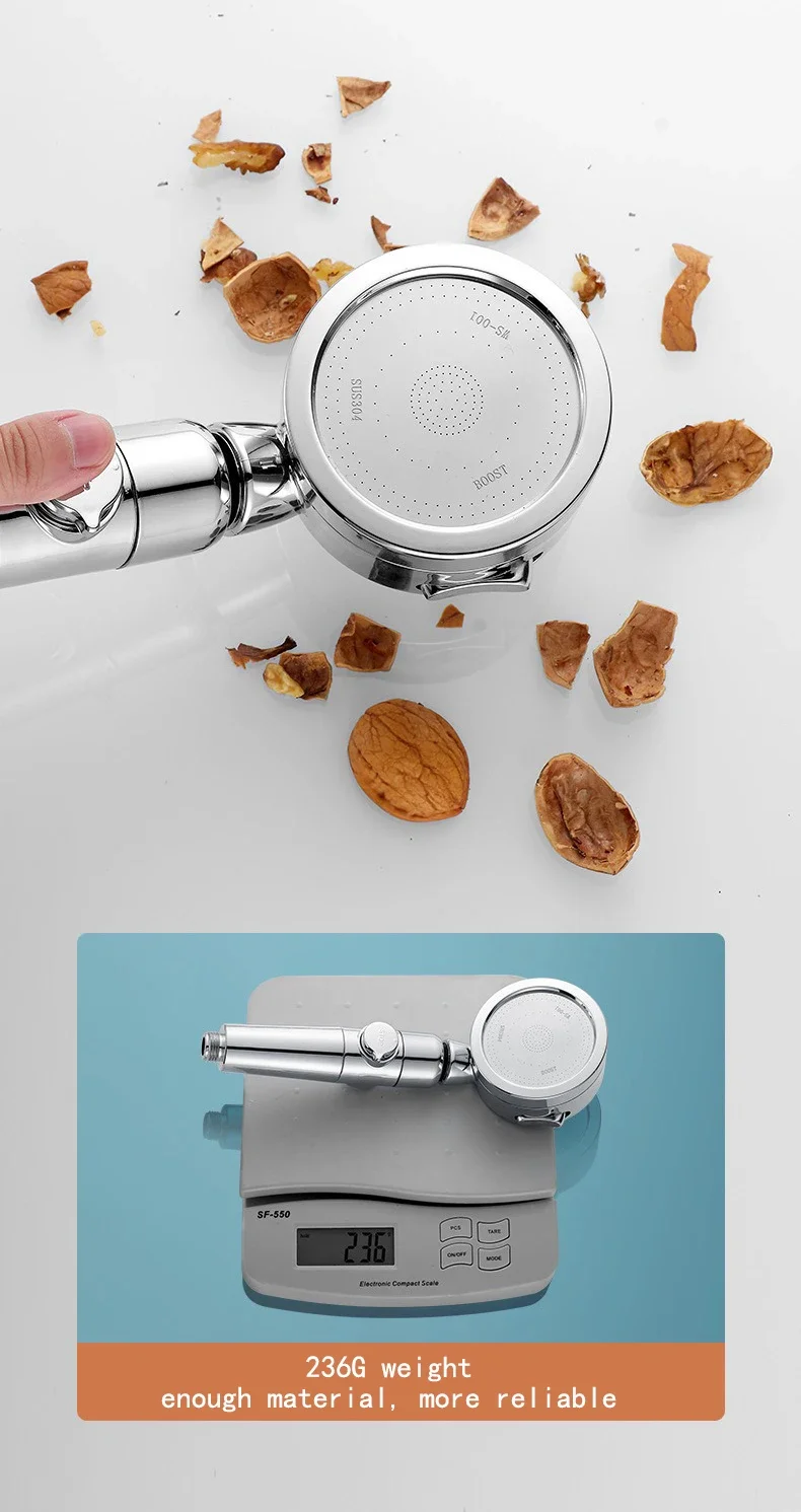 Matériau : Cette pomme de douche pressurisée est fabriquée en matériau ABS écologique, légère et résistante à l’usure.durable, confortable.