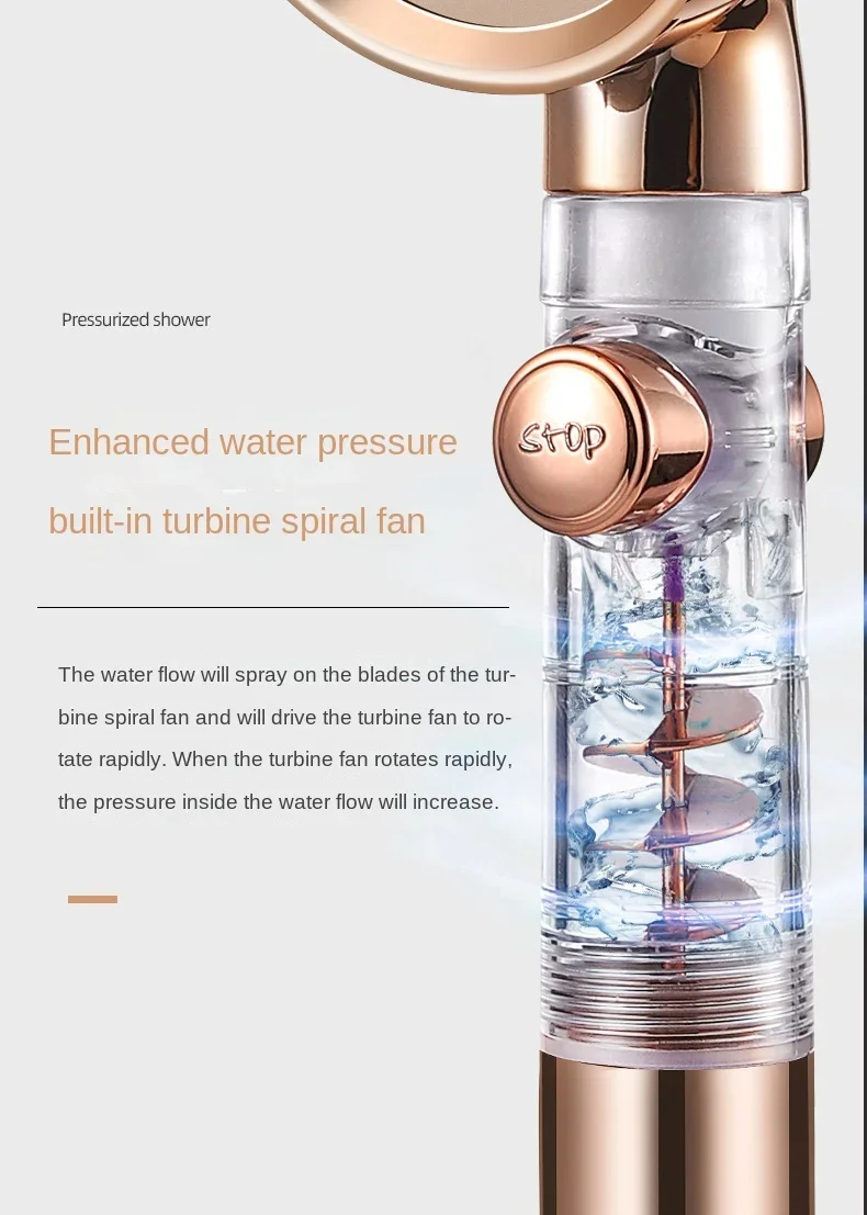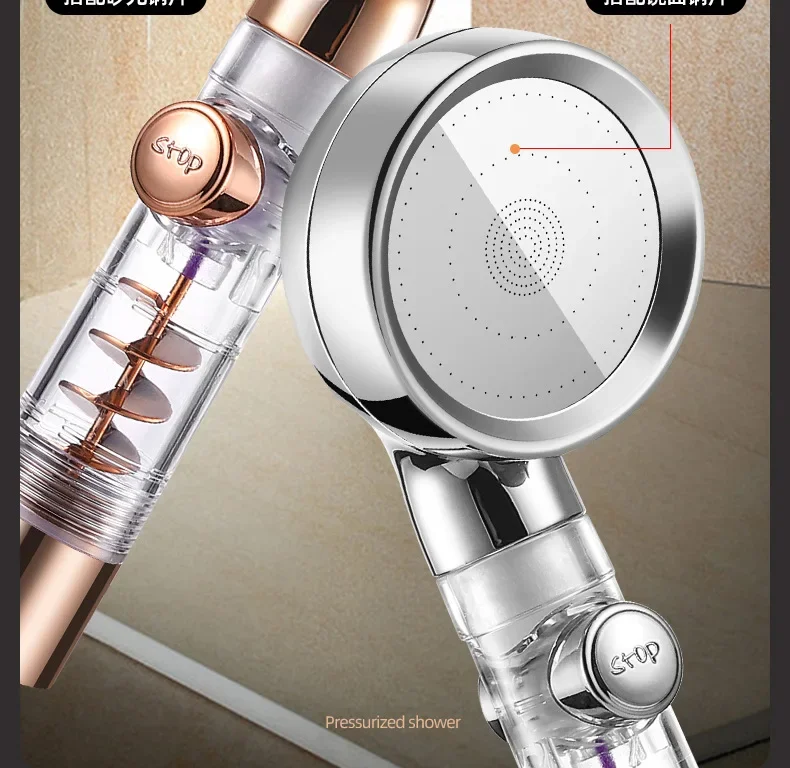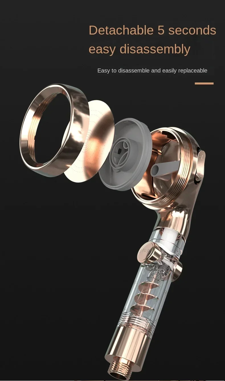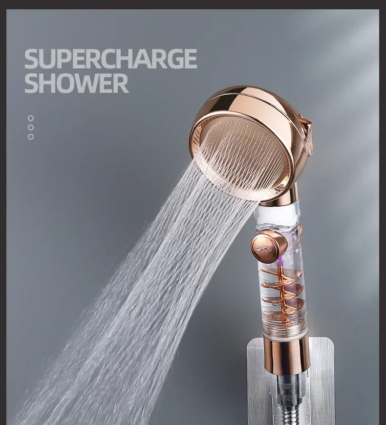 Pommeau de douche haute pression, 3 Modes, pomme de douche à économie d’eau dorée avec bouton d’arrêt, filtre écologique, accessoires de salle de bains