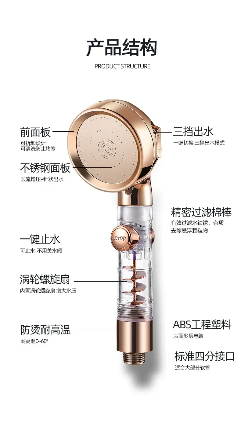 Pommeau de douche haute pression, 3 Modes, pomme de douche à économie d’eau dorée avec bouton d’arrêt, filtre écologique, accessoires de salle de bains