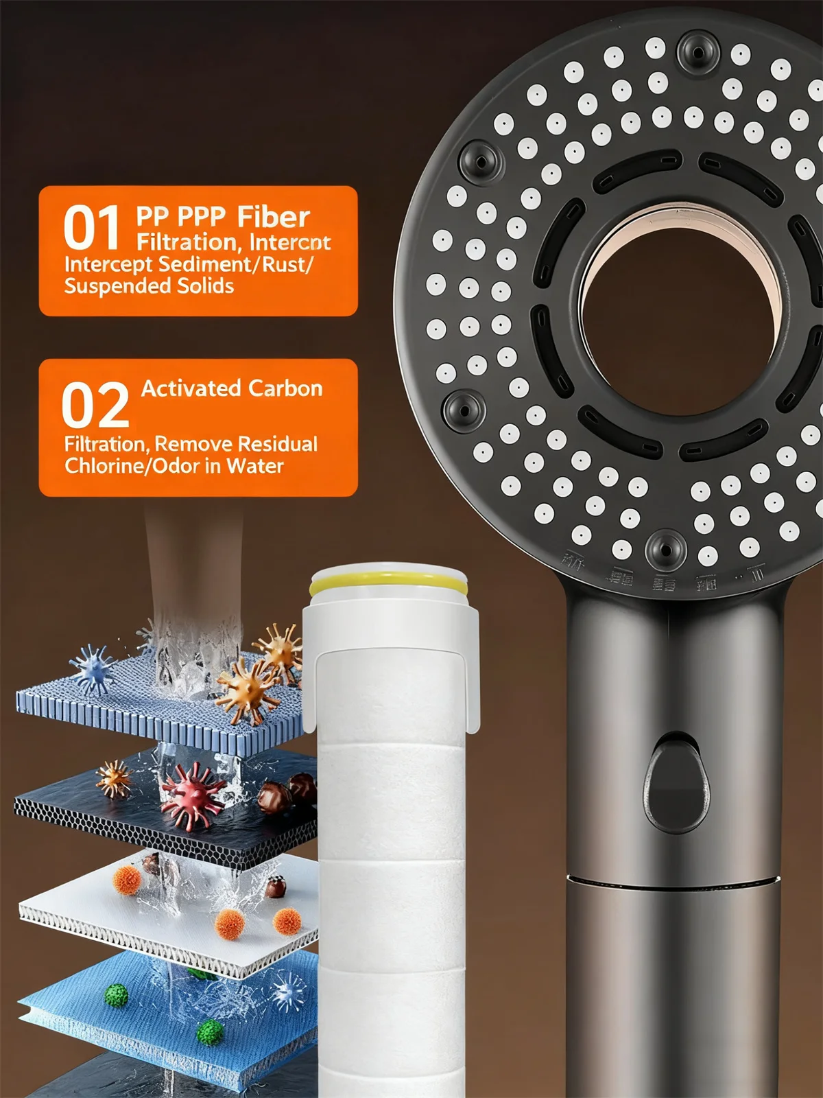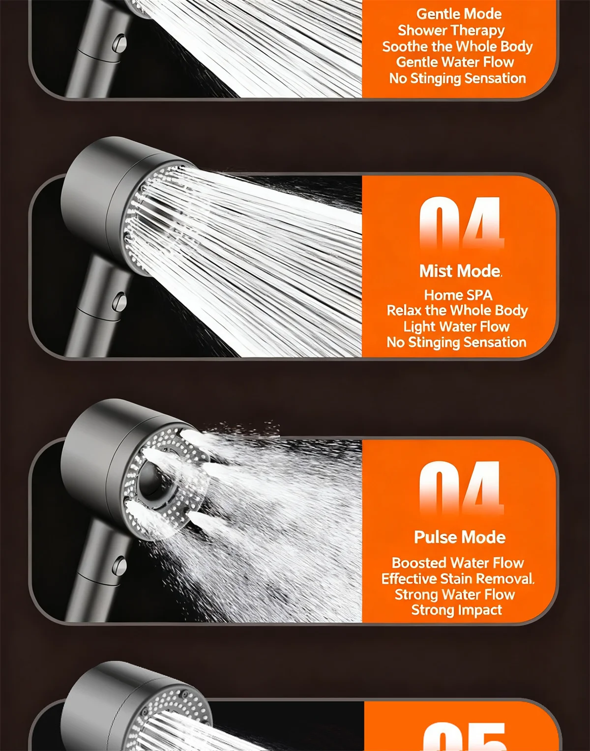 Profitez de douche polyvalente avec 5 modes de pulvérisation filtrés, sur mesure pour convenir vos préférences du bain.