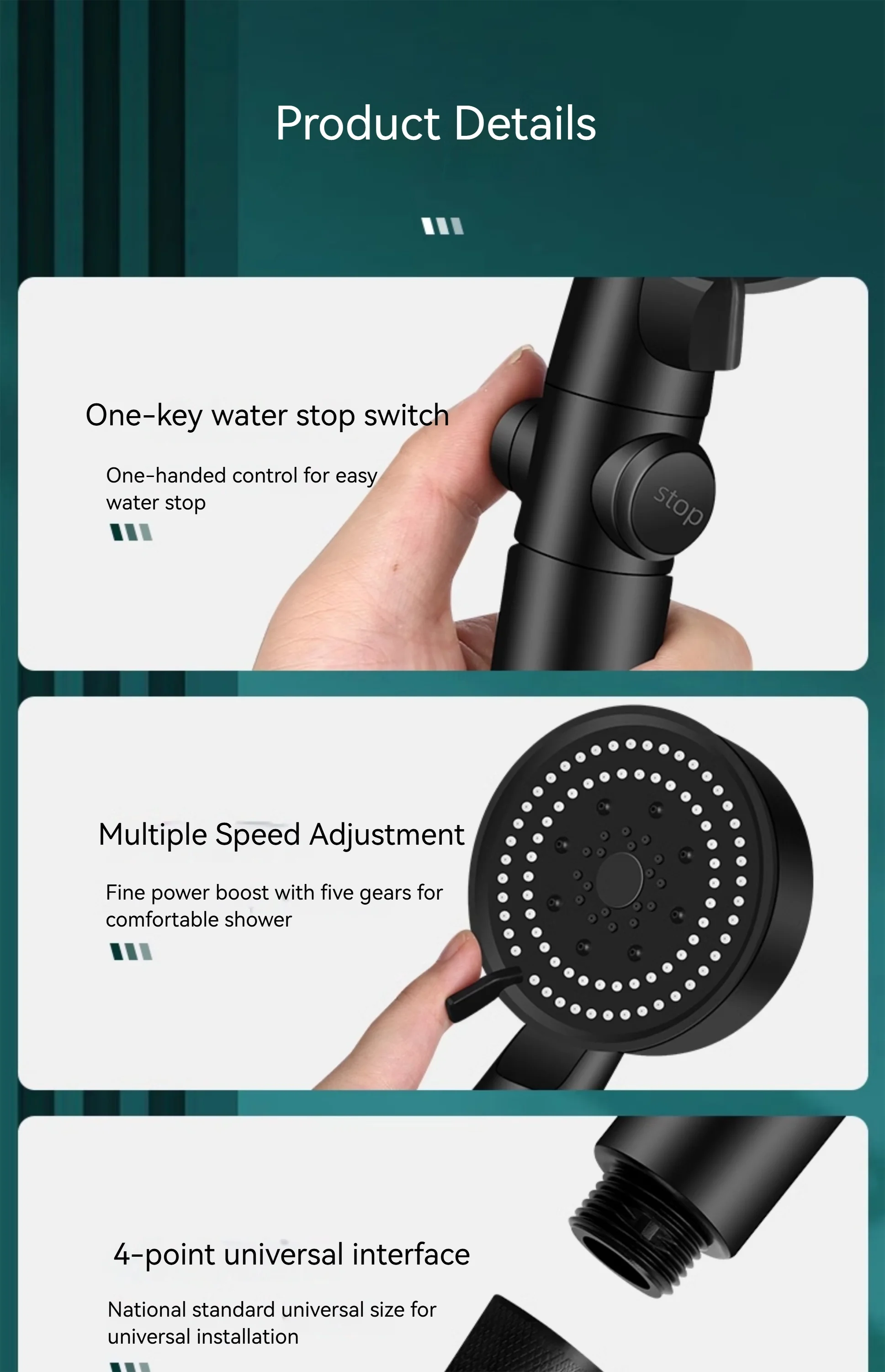✅ Compatibilité universelle du tuyau – S’adapte à la plupart des bras/tuyaux de douche standard ; installation facile en quelques minutes.