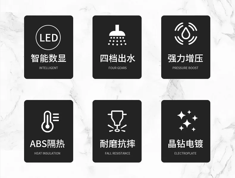 Pommeau de douche haute pression, accessoire de salle de bains, économie d’eau, pulvérisation réglable pressurisée, affichage numérique de la température LED