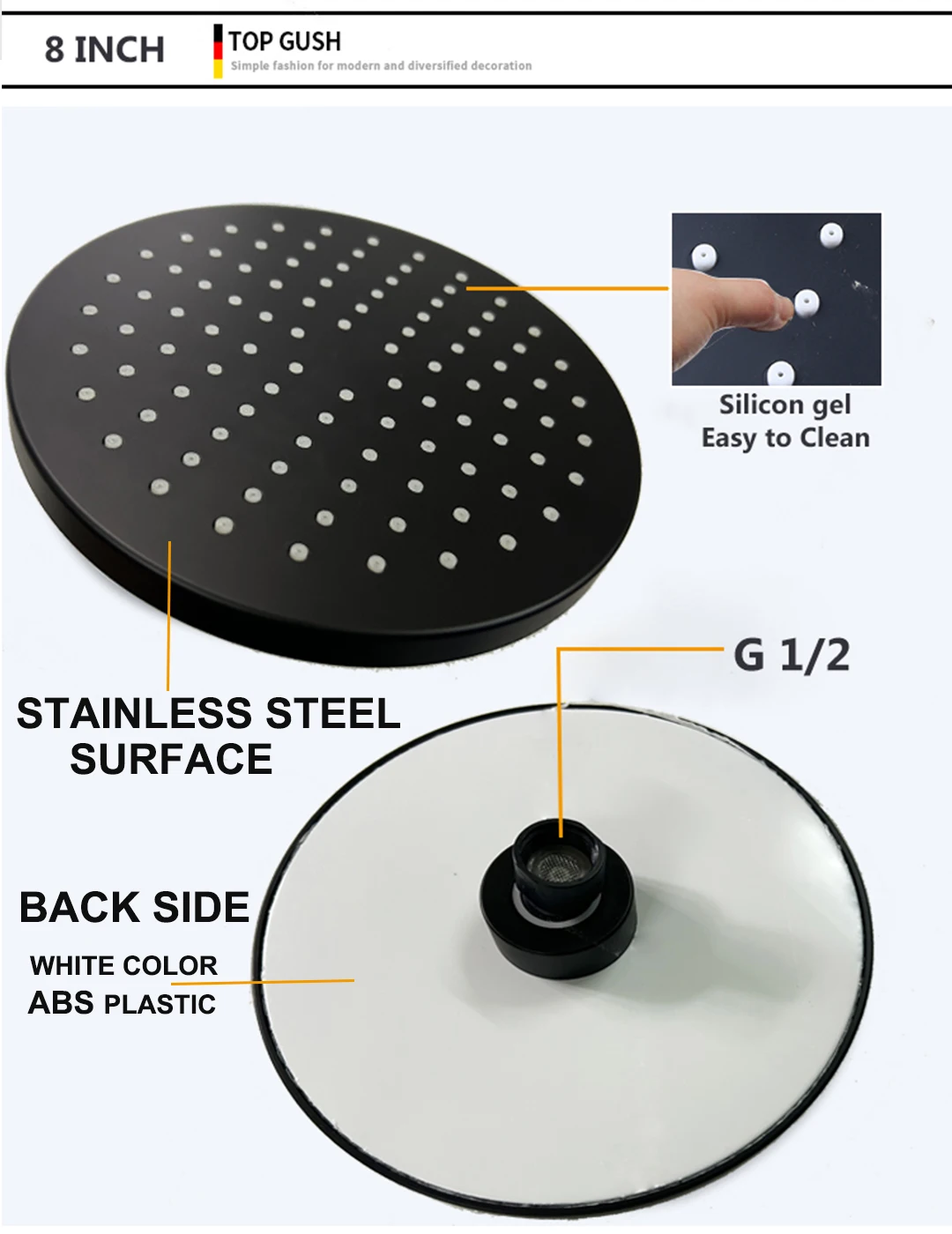 • Pommeau de douche en acier inoxydable, matériau durable et résistant à la corrosion