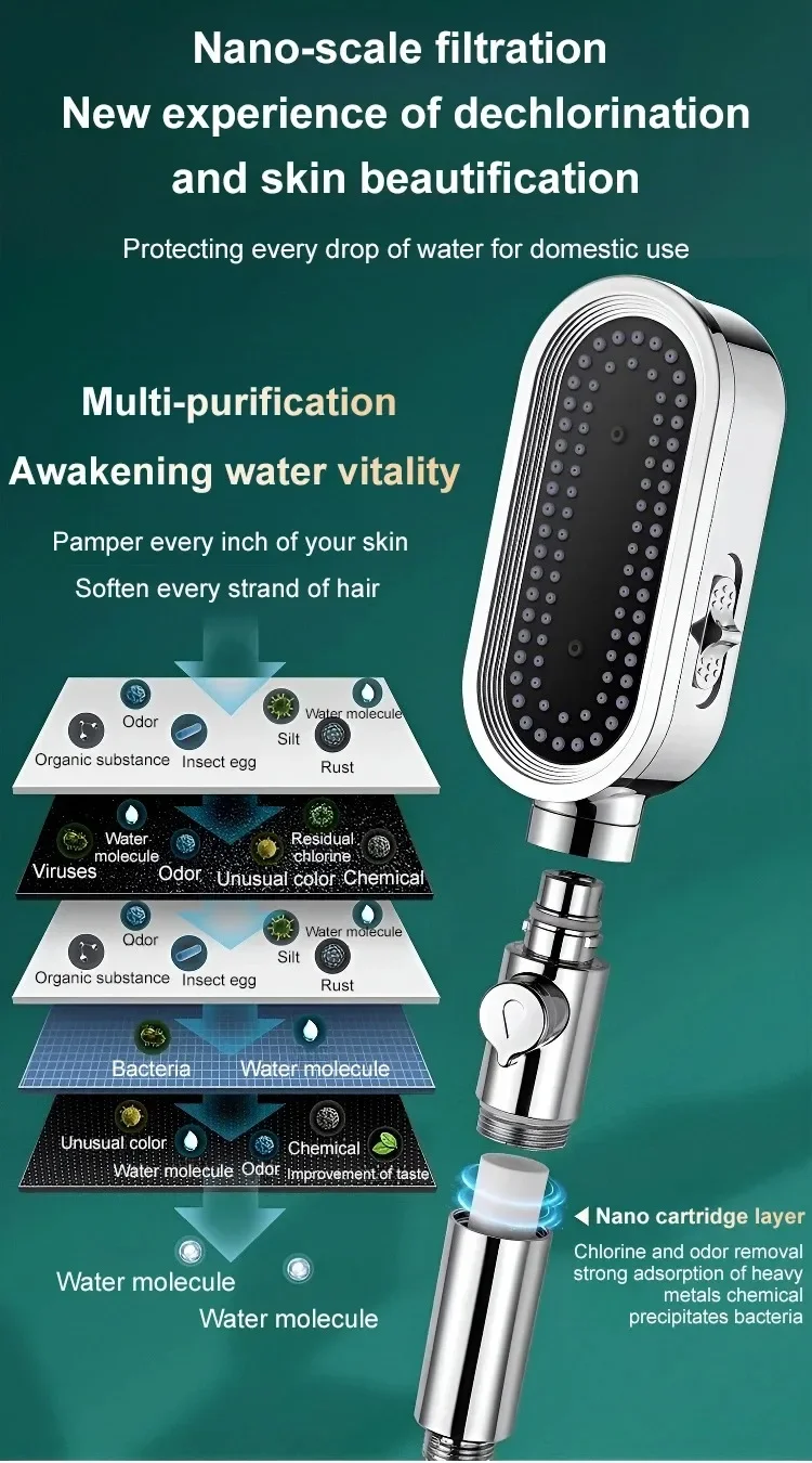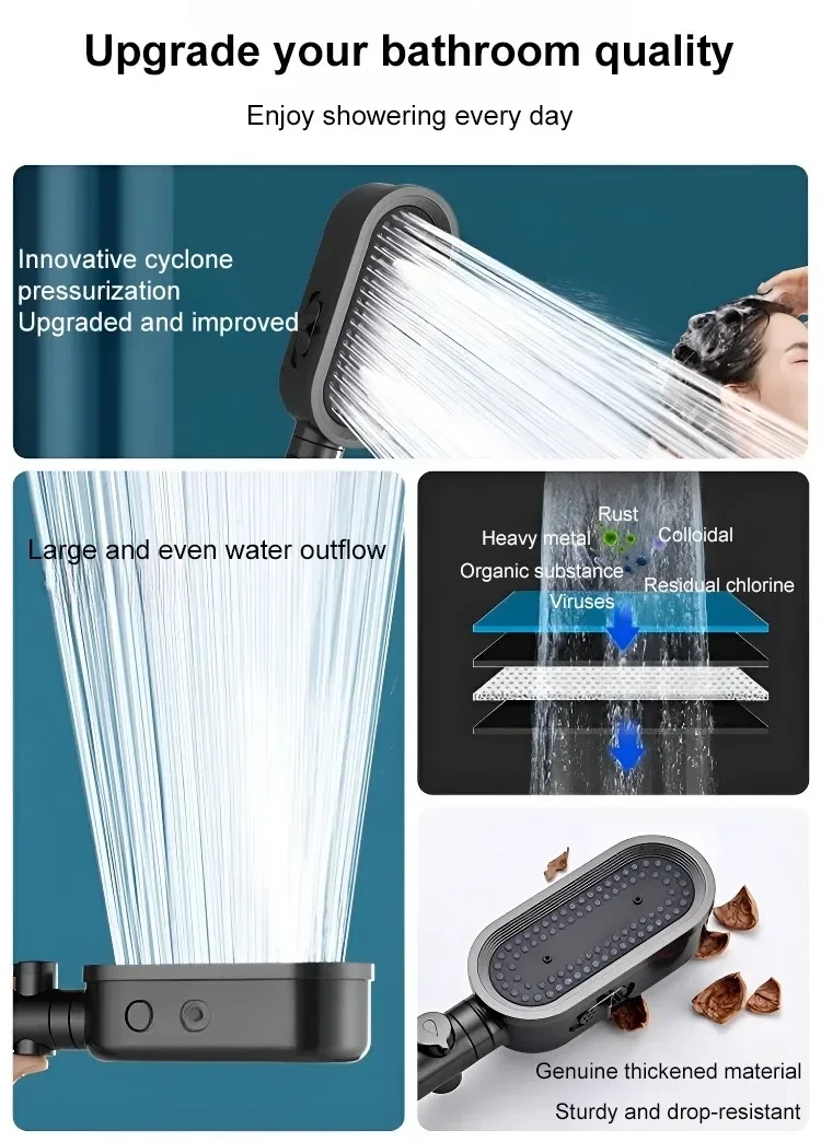 Pommeau de douche haute pression 3 en 1 avec filtre, bouton réglable à main, pomme de douche de salle de bains, économie d’eau, accessoires de salle de bains