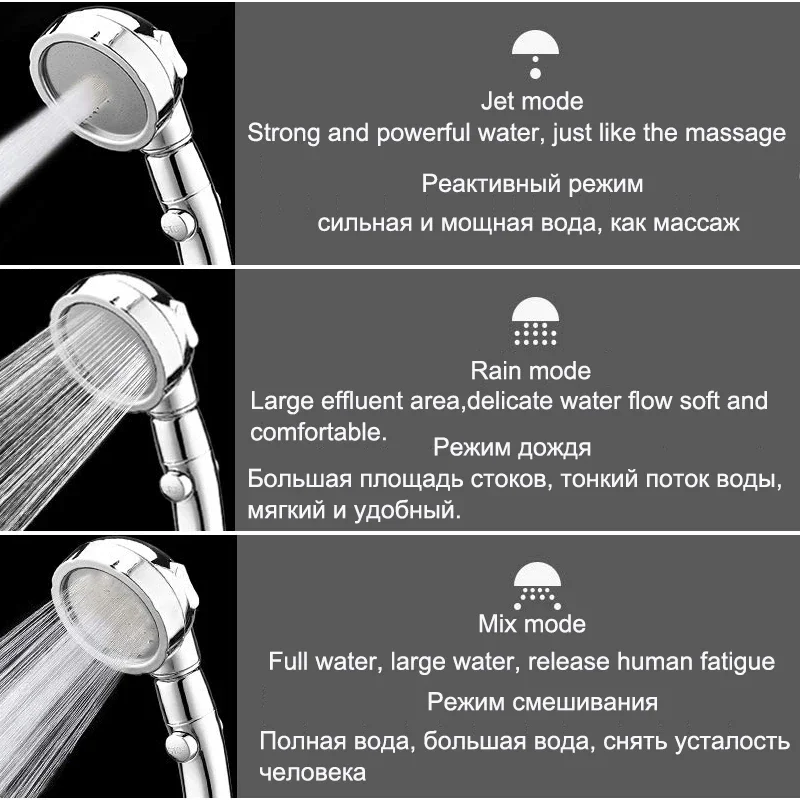 Nom : pomme de douche à 3 modes et rotation à 360 degrés.