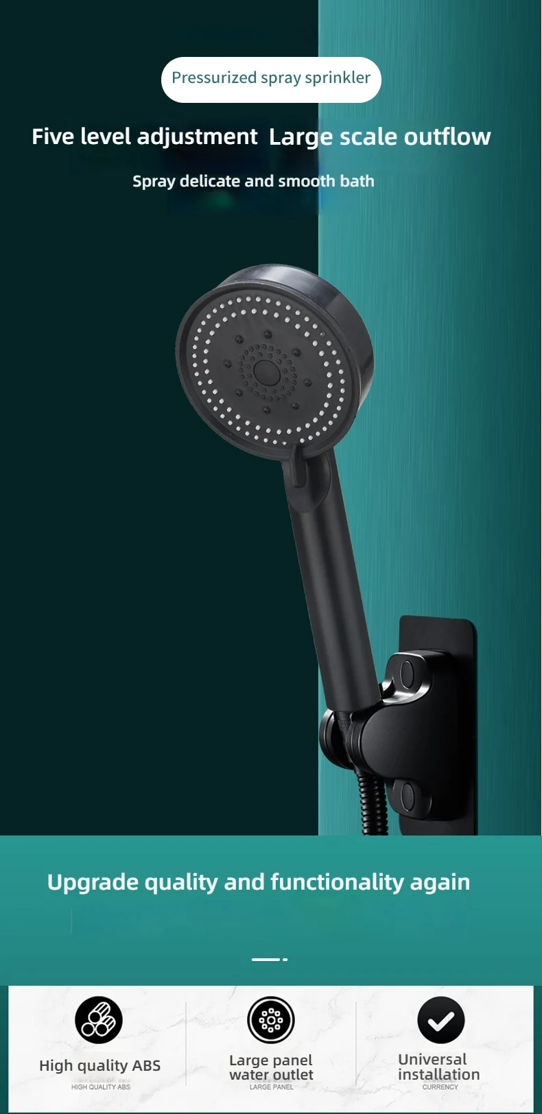 La pomme de douche utilise la technologie des micro-buses qui rendent les trous de sortie plus petits et plus denses, augmentant ainsi la vitesse du débit d’eau. En même temps, jusqu’à 40 % d’économies d’eau par rapport aux pommeaux de douche ordinaires.