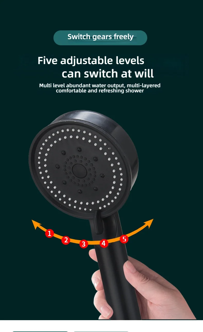 La pomme de douche portative adopte une interface standard internationale G1/2, adaptée à la plupart des tuyaux et supports ou aux bras de fixation de douche. Elle peut être installée seule sans utiliser de plombiers ni d’outils.