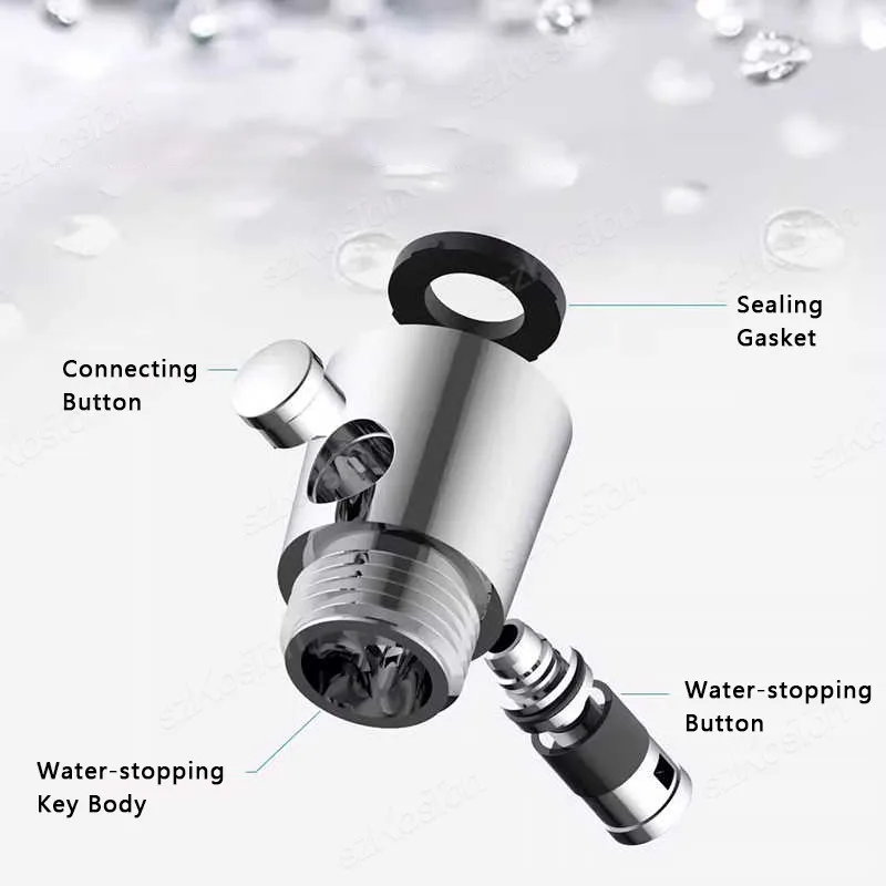 2.La valve d’arrêt d’eau est directement installée et connecte entre le tuyau et la douchette à main pour réaliser -interrupteur à clé d’eau.