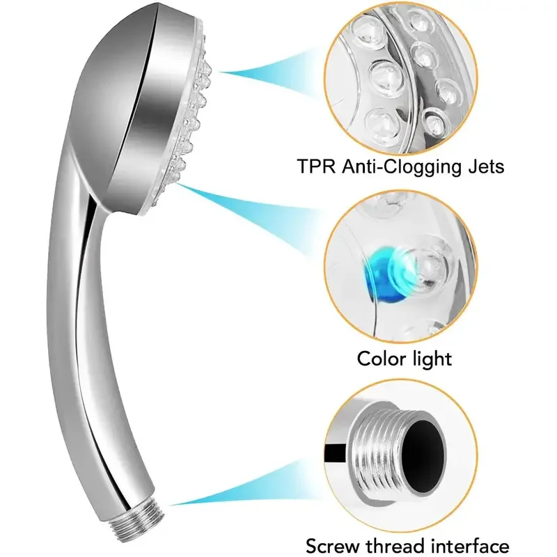Pommeau de douche LED changeant de 7 couleurs pommeaux de douche auto-convertissants colorés accessoires de salle de bain de douche à économie d’eau