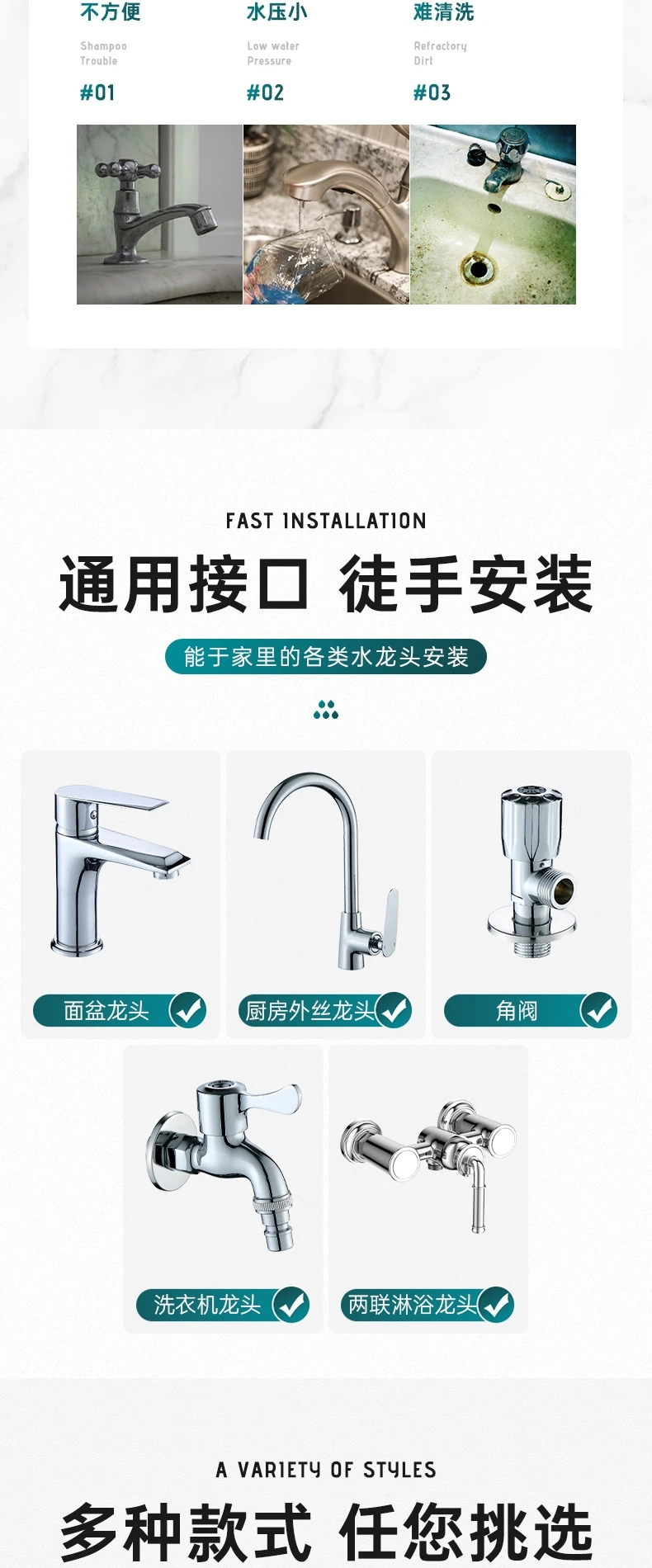 - Fonction de la pomme de douche: Pommes de douche à économie d’eau