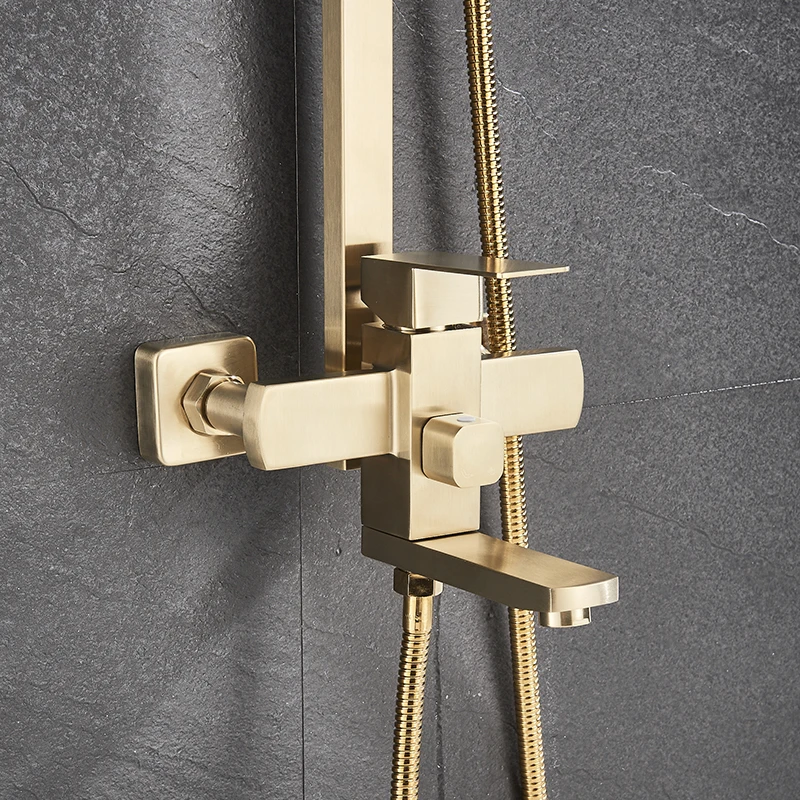 Pommeau de douche pluie et douchette à main en acier inoxydable, or brossé, robinet de douche, bec de baignoire rotatif, montage mural, 8 poPommeau de douche pluie et douchette à main en acier inoxydable, or brossé, robinet de douche, bec de baignoire rotatif, montage mural, 8 po