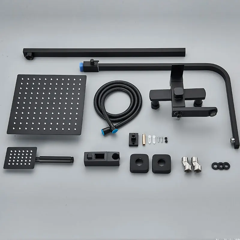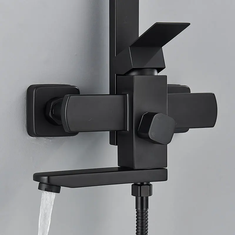 Mitigeur de douche noir mat robinet mural Bahtroom pommeau de douche à effet pluie douchette carré bain douche ensemble