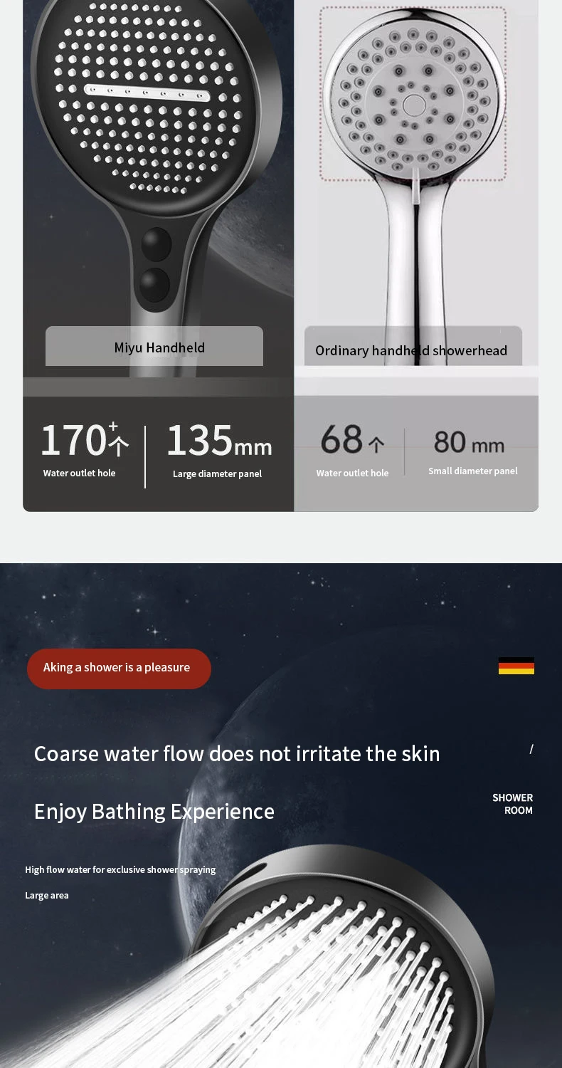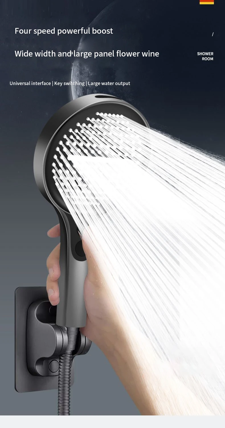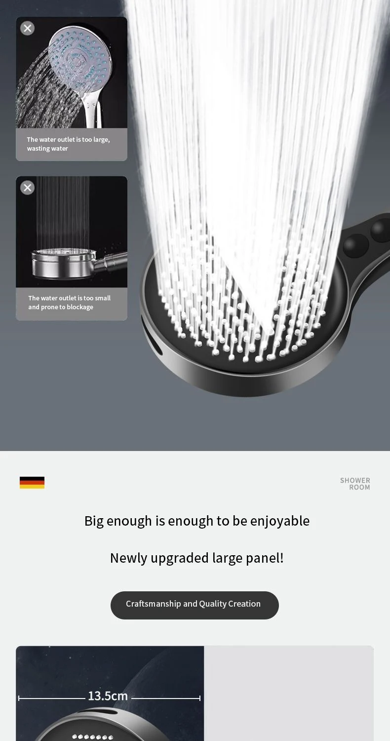 Pommeau de douche puissant suralimenté, grand panneau de 13.5cm, grande sortie d’eau, ensemble de douche pluie à main pour la maisonPommeau de douche puissant suralimenté, grand panneau de 13.5cm, grande sortie d’eau, ensemble de douche pluie à main pour la maison