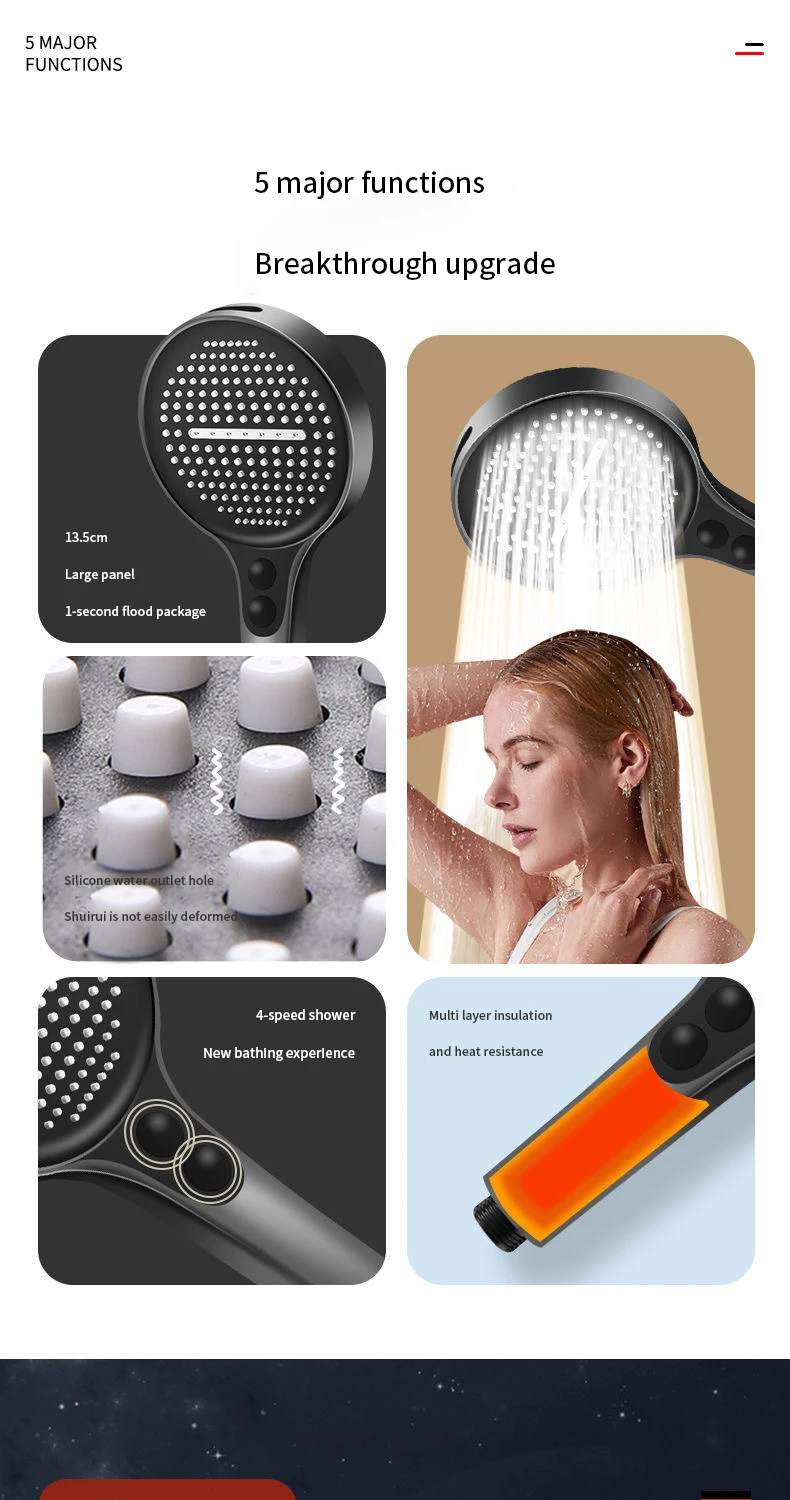"Ce pommeau de douche est vraiment fantastique ! La puissance du jet est impressionnante et le grand panneau de 13.5cm offre une couverture optimale. J'apprécie aussi la possibilité d'utiliser le mode pluie à main, très pratique pour me rincer. Le seul petit bémol serait que le débit d'eau est un peu plus élevé que prévu, mais cela n'entache en rien la qualité globale du produit. Dans l'ensemble, je suis ravi de mon achat et je le recommande sans hésiter !"