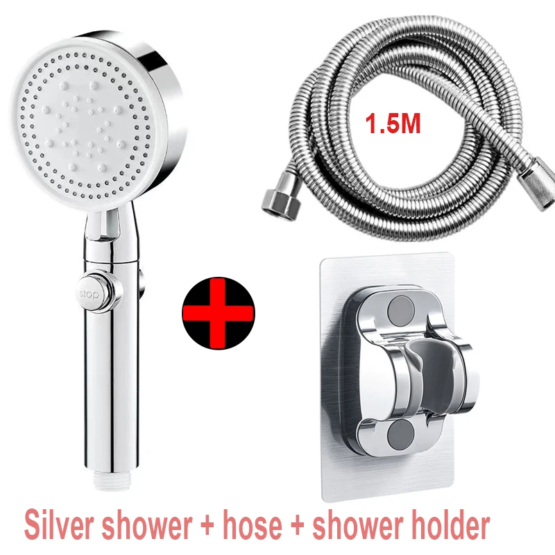 Pommeau de douche booster multifonctionnel avec 5 modes, grande douche à eau réglable, buse d’économie d’eau avec arrêt d’eau à une touche
