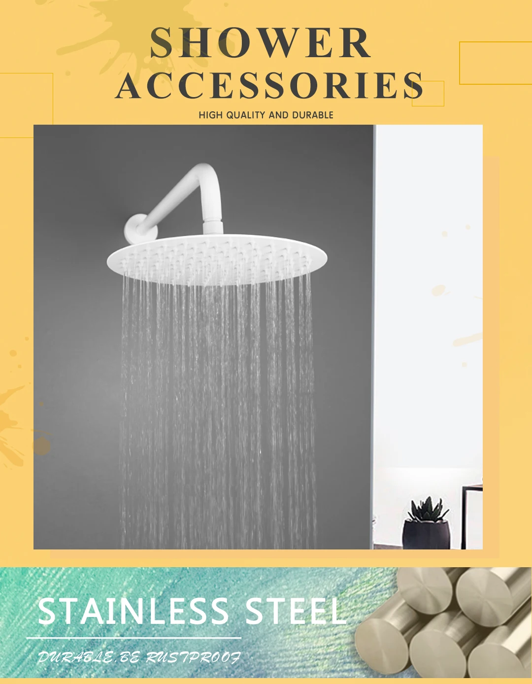 Matériau : pomme de douche en acier inoxydable + bras de douche en acier inoxydable.