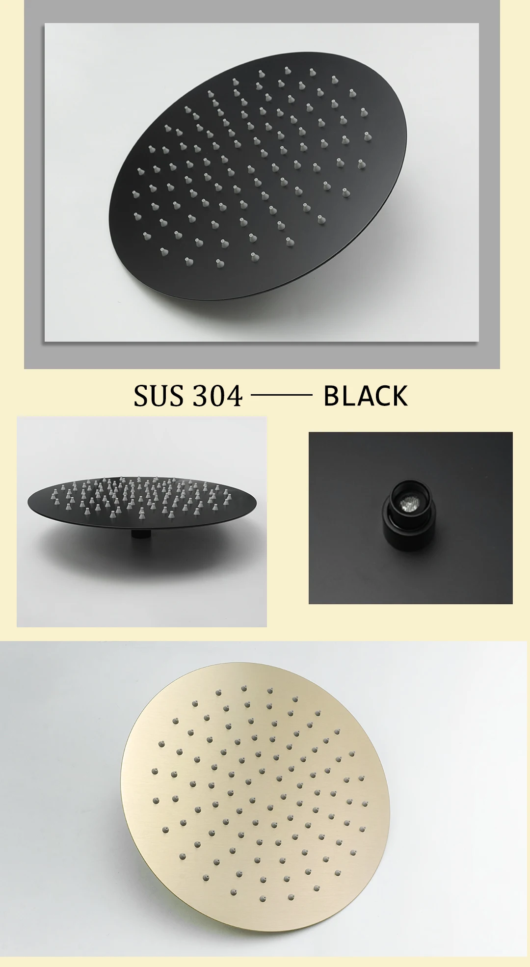 Pommeau de douche rond en or brossé chromé/noir mat 8"/10"/12", économie d’eau, accessoire de salle de bains ultra-mince en acier inoxydable