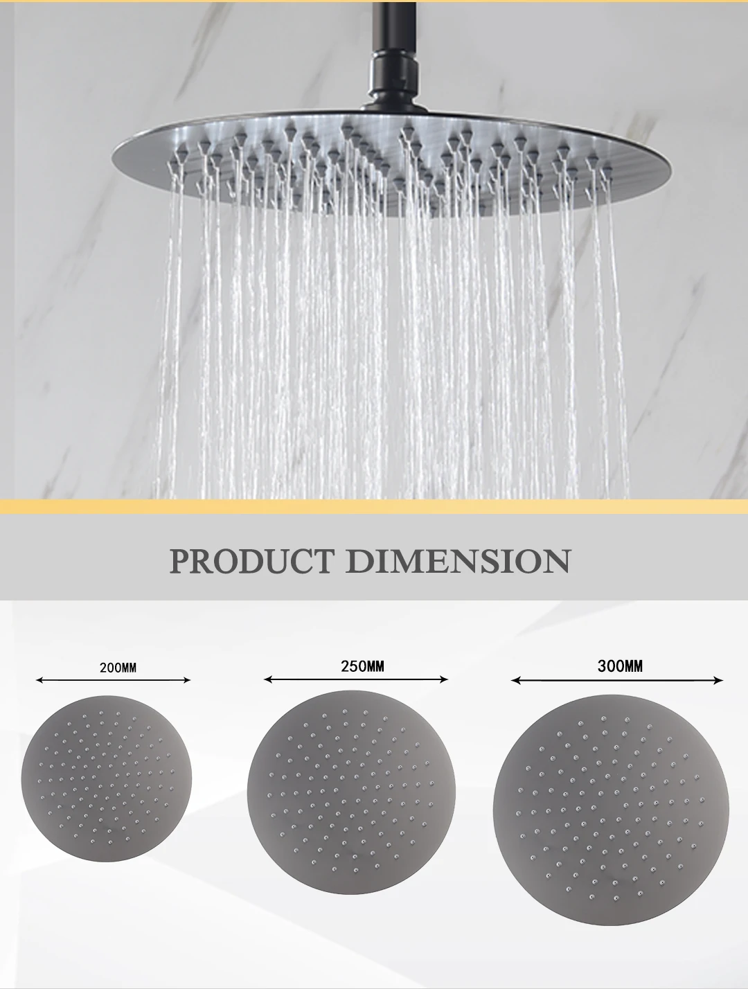 Pomme de douche ronde en acier inoxydable Ultra-fin, or brossé, Chrome/noir mat, 8 « /10″/12 pouces, économie d’eau, accessoire de salle de bains