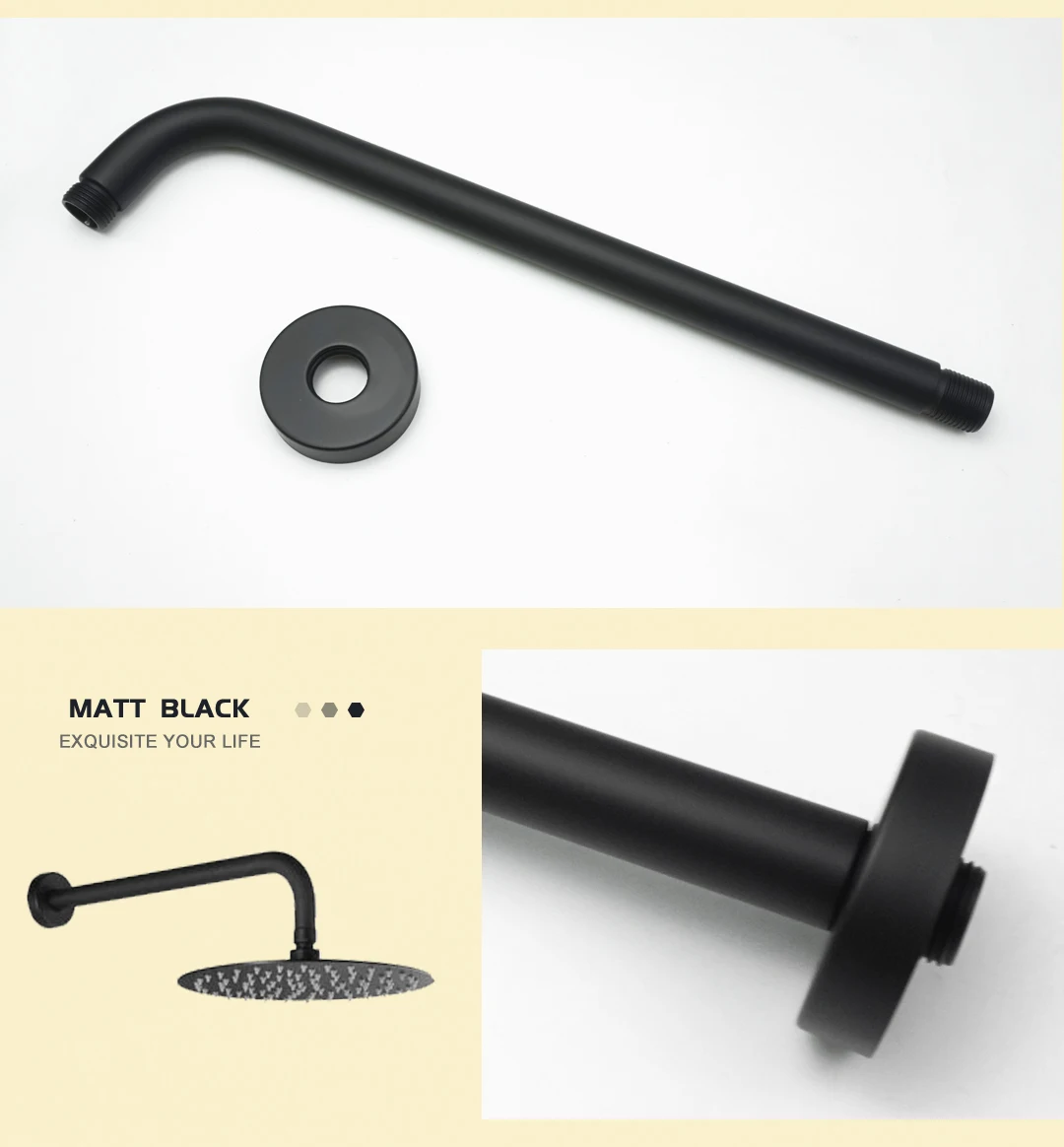 Matériau : pomme de douche en acier inoxydable + bras de douche en acier inoxydable.