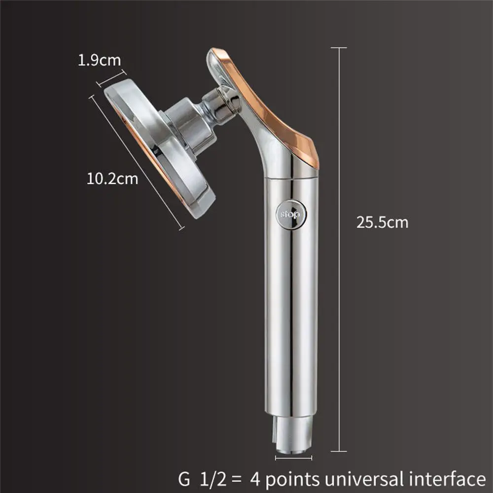 Taille standard avec interrupteur Stop Pause sur la poignée, très pratique à contrôler lorsque vous souhaitez régler la température de l’eau.Type : pomme de douche à main.