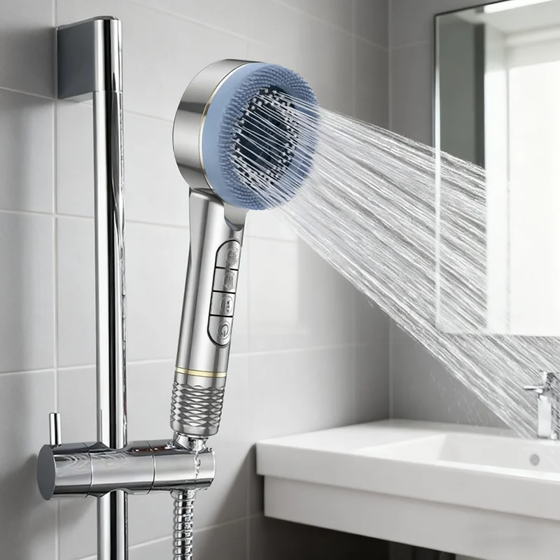 Pommeau de douche suralimenté filtré à réglage à quatre vitesses, avec joint d’eau, accessoires de salle de bains multifonctionnels pour douche domestique