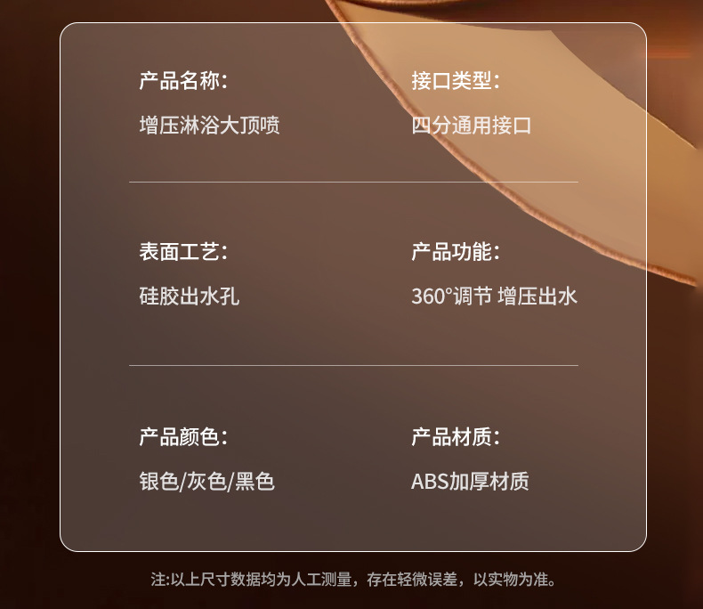 Big Panel Large Flow Supercharge Rainfall Ceiling Mounted Shower Head 360 Rotation High Pressure Abs Thicken Bathroom Shower