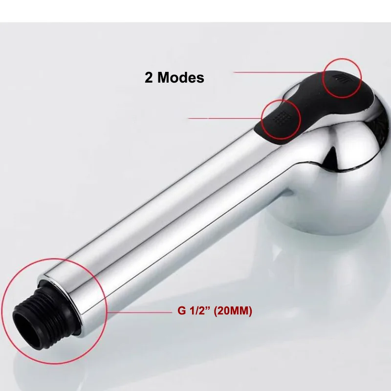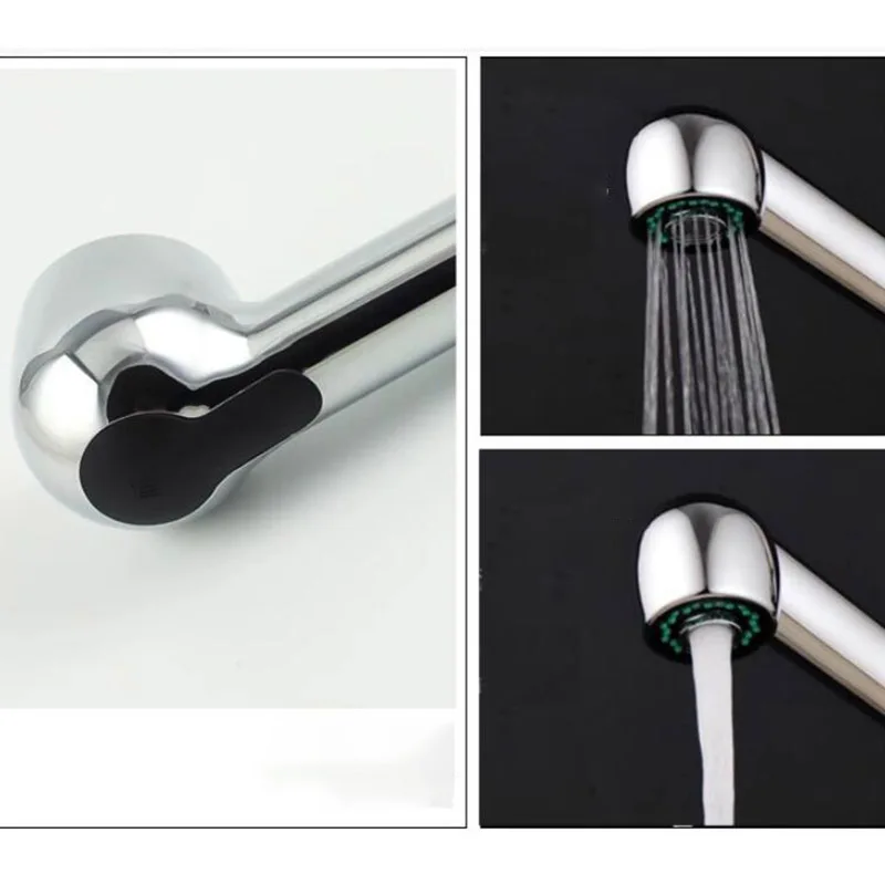 3. Type d’écoulement d’eau à double mode, y compris le type de bulle et le type de douche, vous pouvez ajuster en appuyant sur le bouton sur la tête du pulvérisateur.