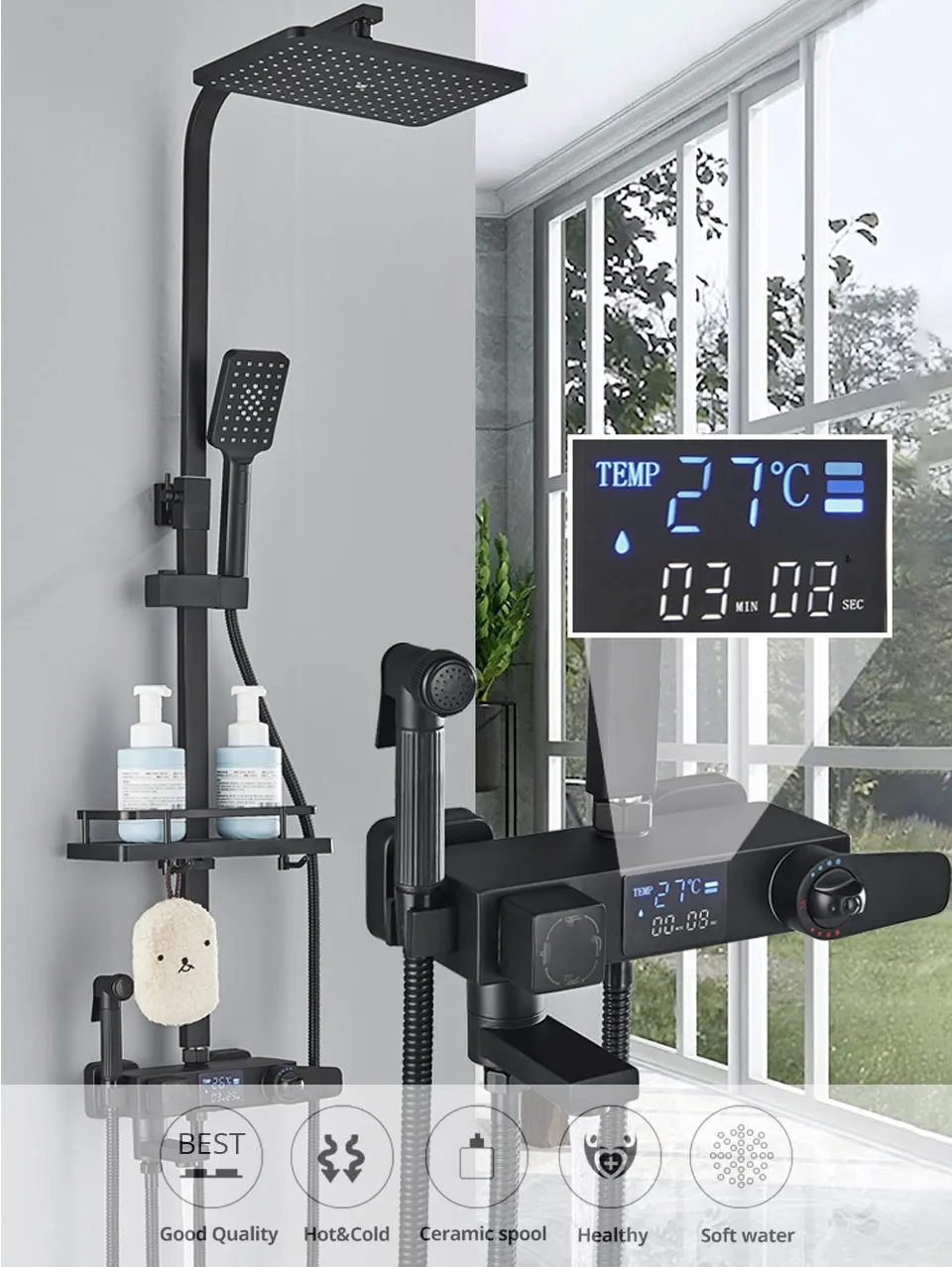 - Function: shower head and hand shower
