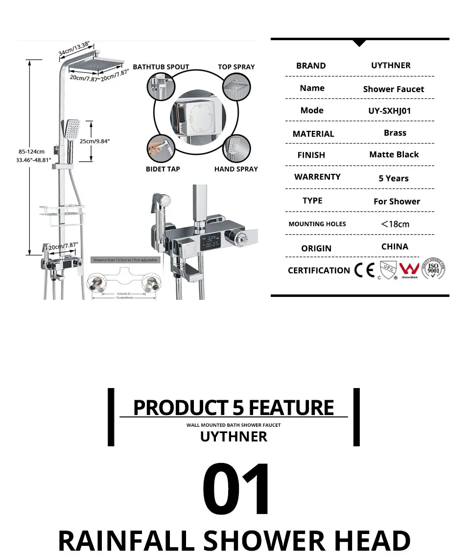 - Installation Type: Wall Mounted shower faucet