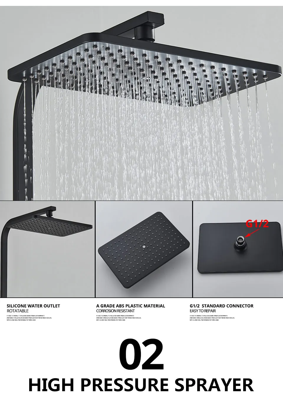 - shower head material: A Grade ABS plastic