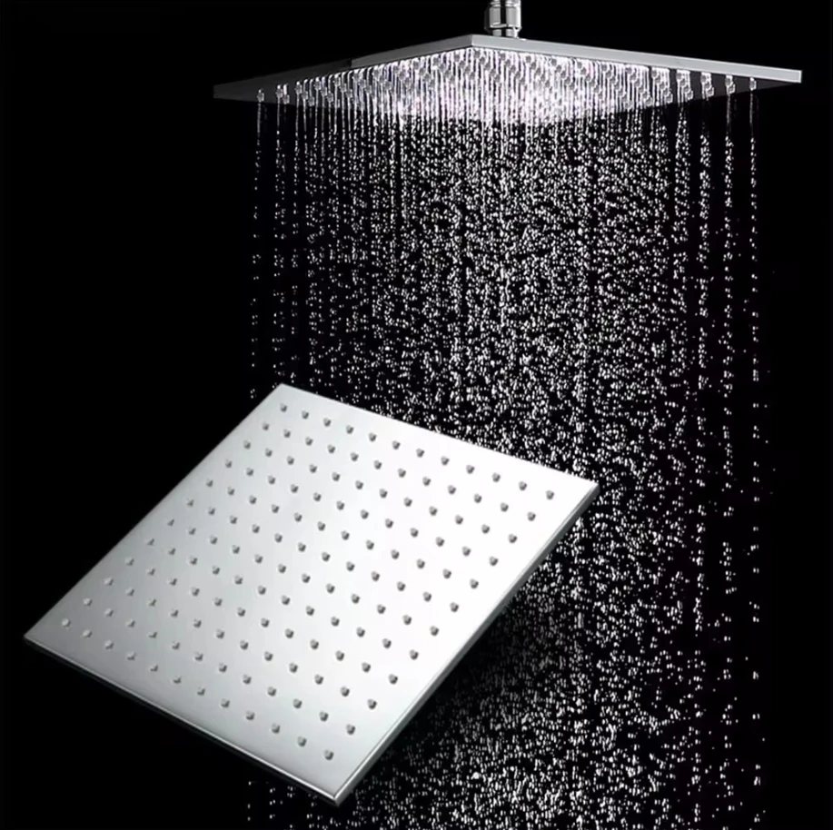 Pommeaux de douche à effet de pluie, 8/10/12 pouces, pomme de douche carrée en acier inoxydable, cascade Ultra fine, pomme de douche pressurisée