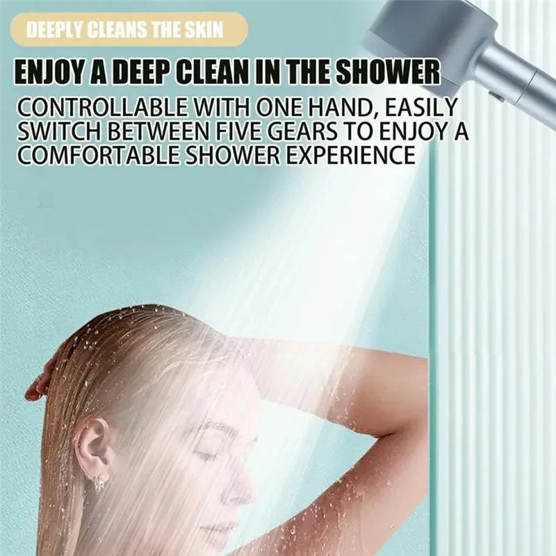 2. Sortie d’eau multifonctionnelle : de la pression revigorante à la brume relaxante, notre pomme de douche haute pression offre cinq modes de décharge d’eau réglables pour répondre à vos préférences personnelles.Sélectionnez facilement le mode souhaité d’un simple tour du bouton, offrant une expérience de douche ajustée à chaque membre de votre famille.