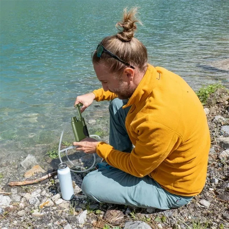 Purificateur d’eau de camping : Filtre à eau extérieur pour randonnée camping sac à dos adapté à la plupart des sources d’eau extérieures, peut tourner efficacement les lacs, les rivières, le printemps, les ruisseurs d’eau potable, le camping, la chasse et la préparation d’urgence.