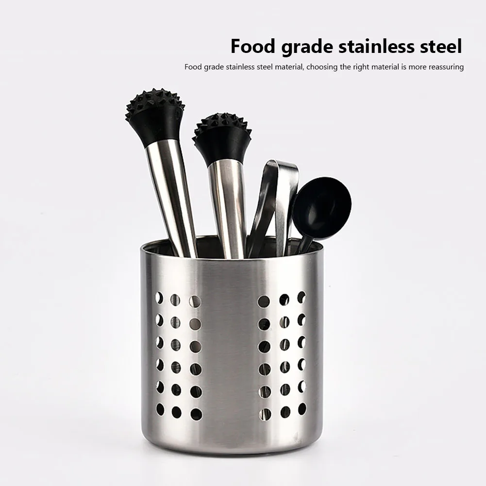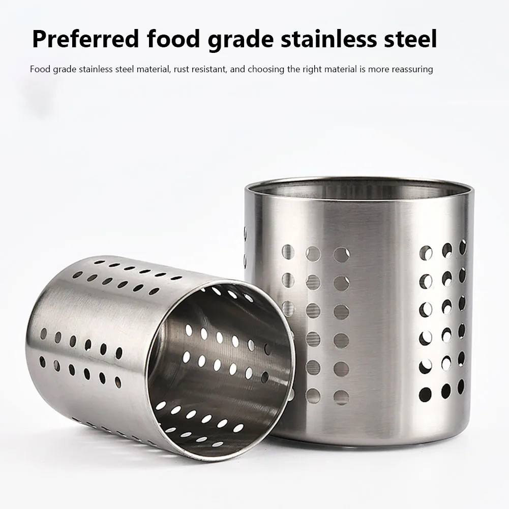 Organisateur d’ustensiles de comptoir en acier inoxydable Cuillère épaissie Organisateur de vaisselle Couverts Caddy Base pondérée avec trous de drainage pour organiser les tiroirs et les comptoirs