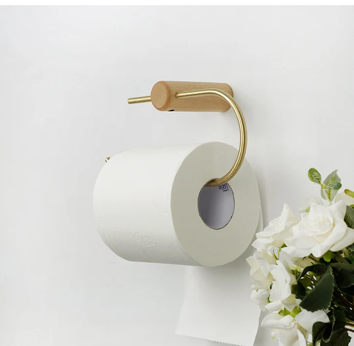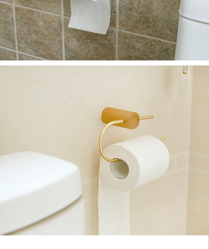 Salle de bain porte-papier hygiénique montage mural rouleau de mouchoirs cintre accessoires de salle de bain papier peint porta papel higienico bois cuivre