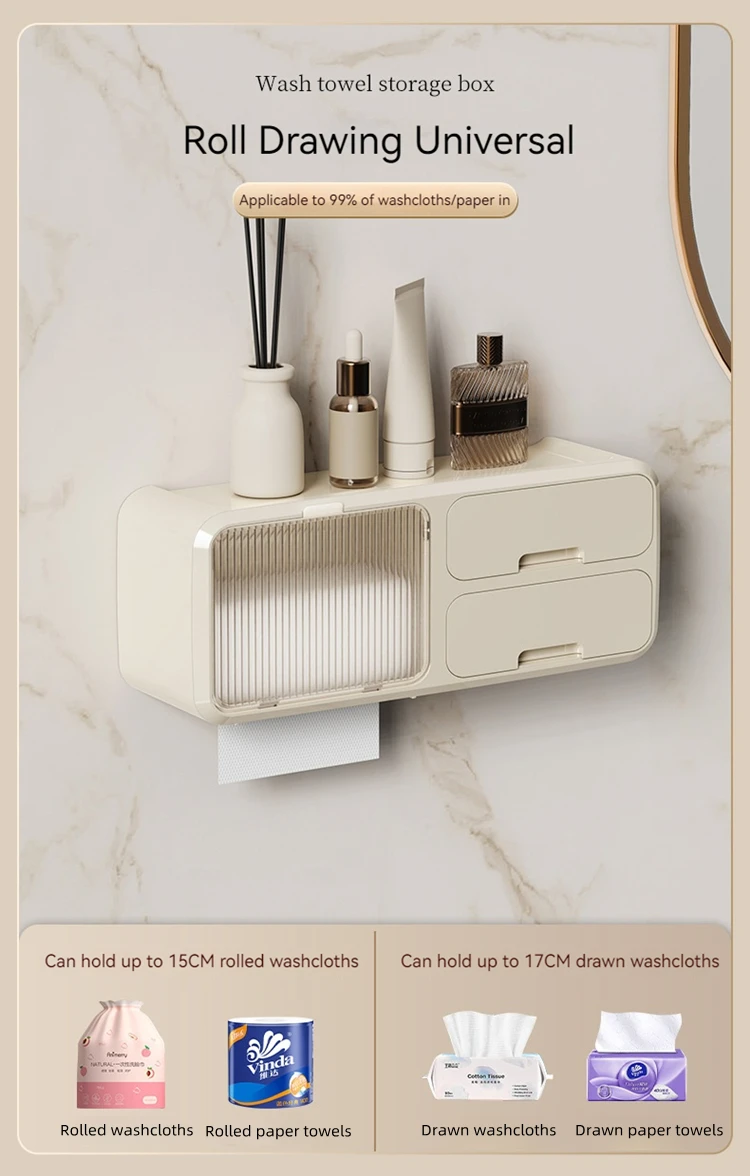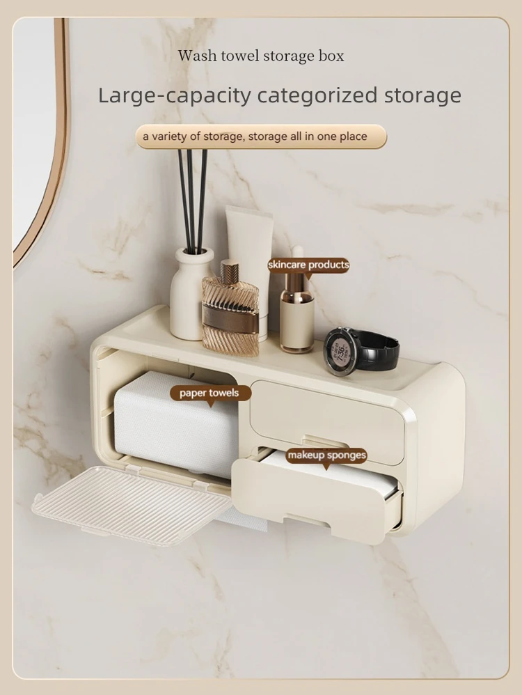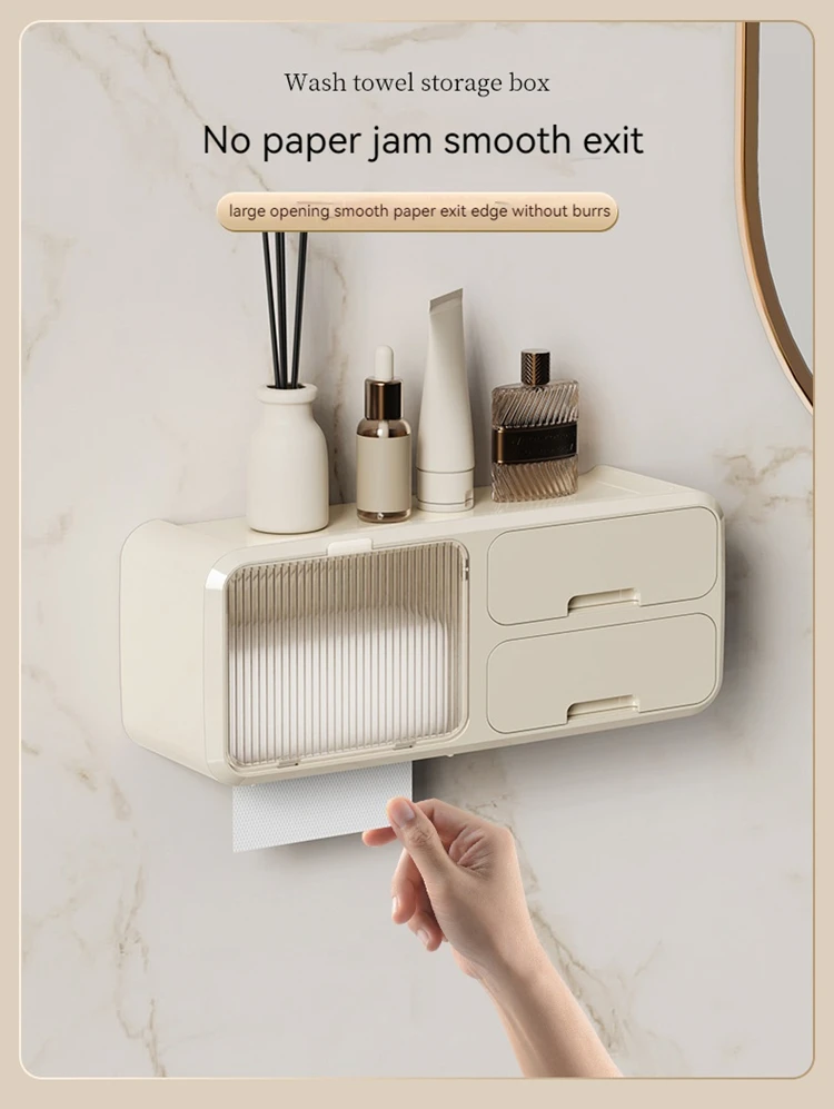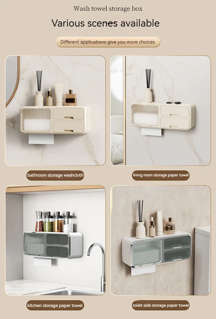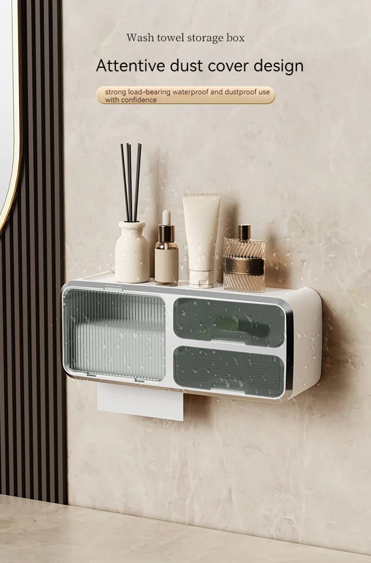 Porte-papier hygiénique mural étanche et anti-poussière, boîte de rangement de mouchoirs, porte-serviettes, sans perceuse, cuisine