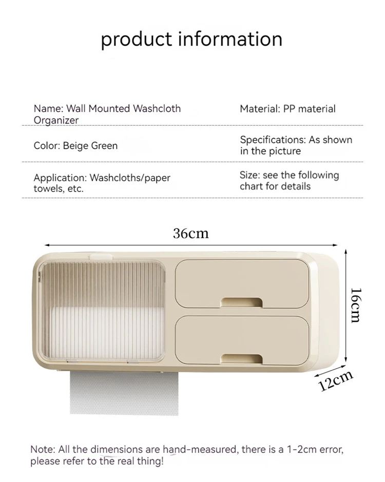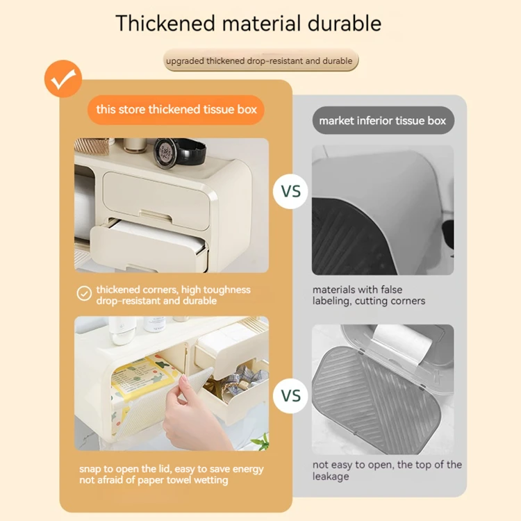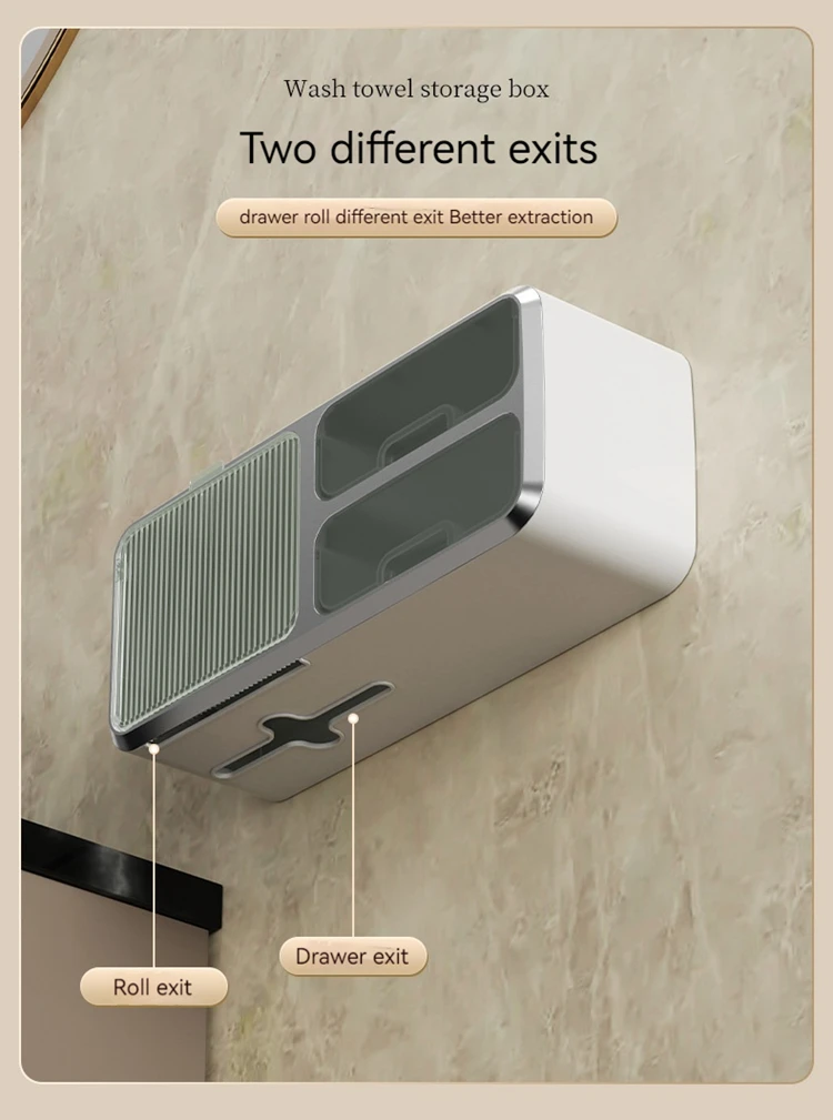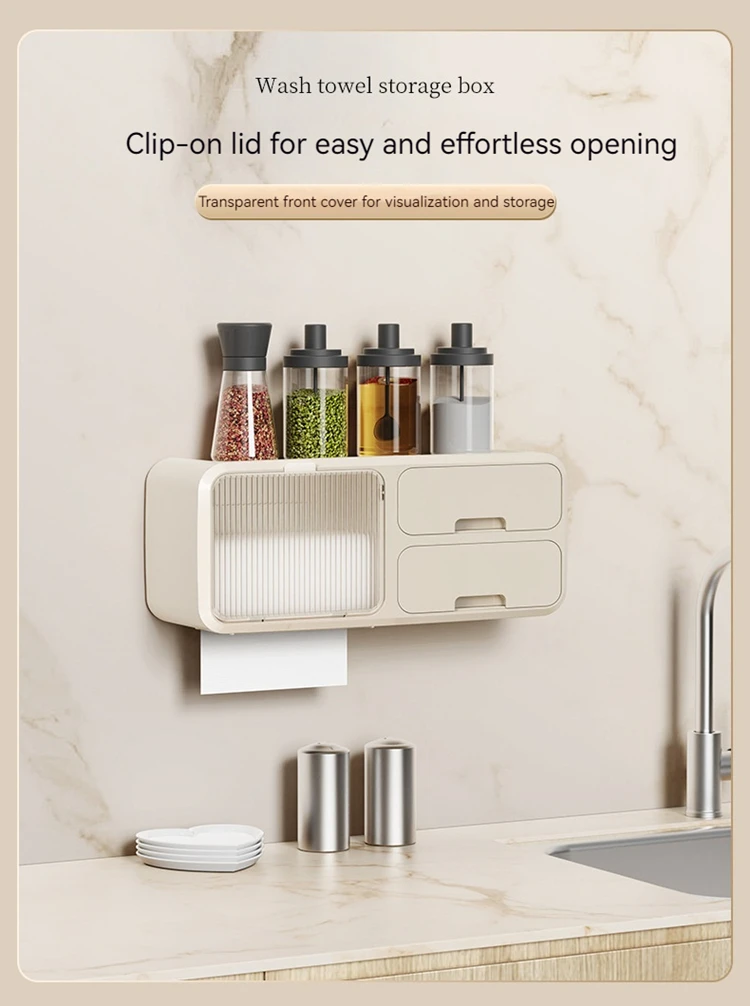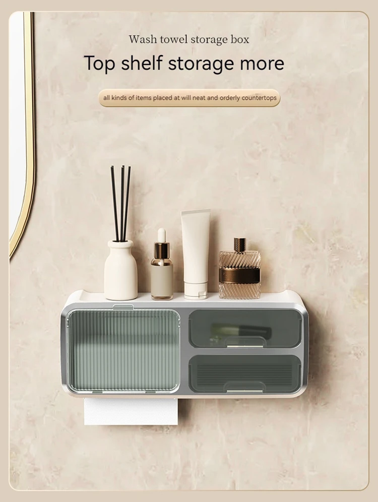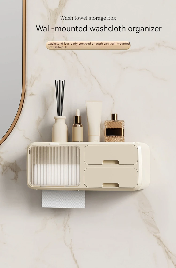 Porte-papier hygiénique mural étanche et anti-poussière, boîte de rangement de mouchoirs, porte-serviettes, sans perceuse, cuisine