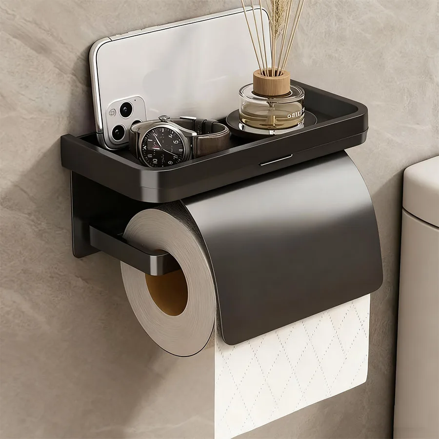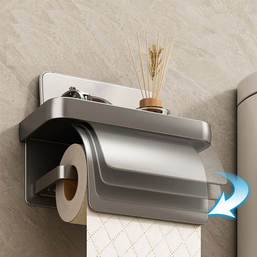 Porte-rouleau de papier toilette, couvercle de ruban adhésif étanche pour toilettes, serviettes en papier, salle de bain sans poinçonnage, boîte à serviettes en papier murale pour toilettes