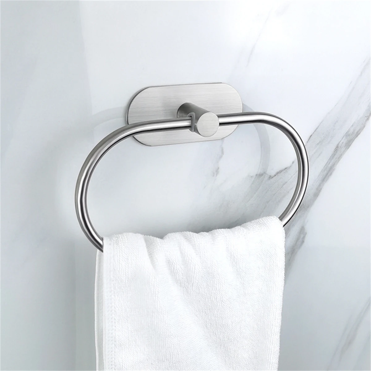 Porte-serviettes adhésif pour mur de salle de bain, porte-serviettes, anneau porte-serviettes en acier inoxydable, support pour serviette, crochet, porte-mouchoirs, support de toilette